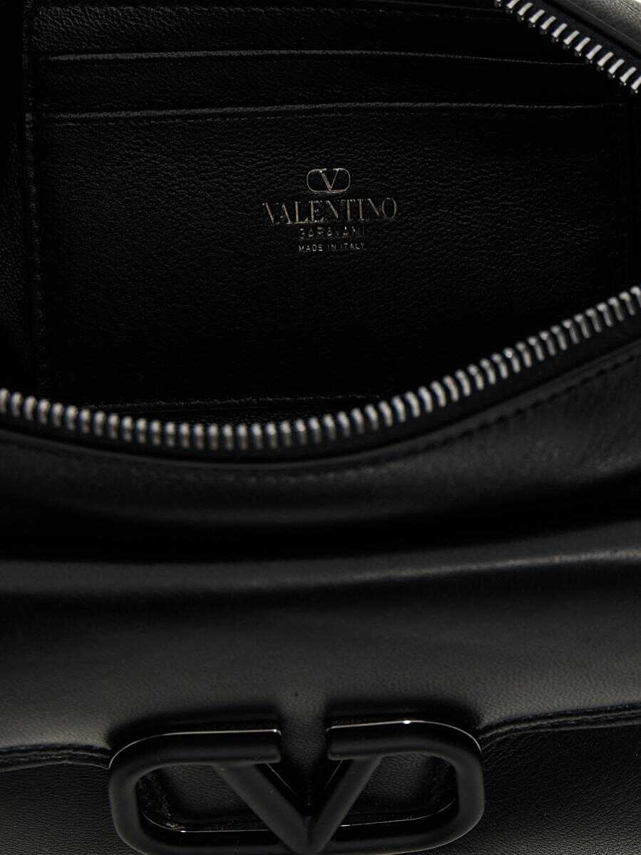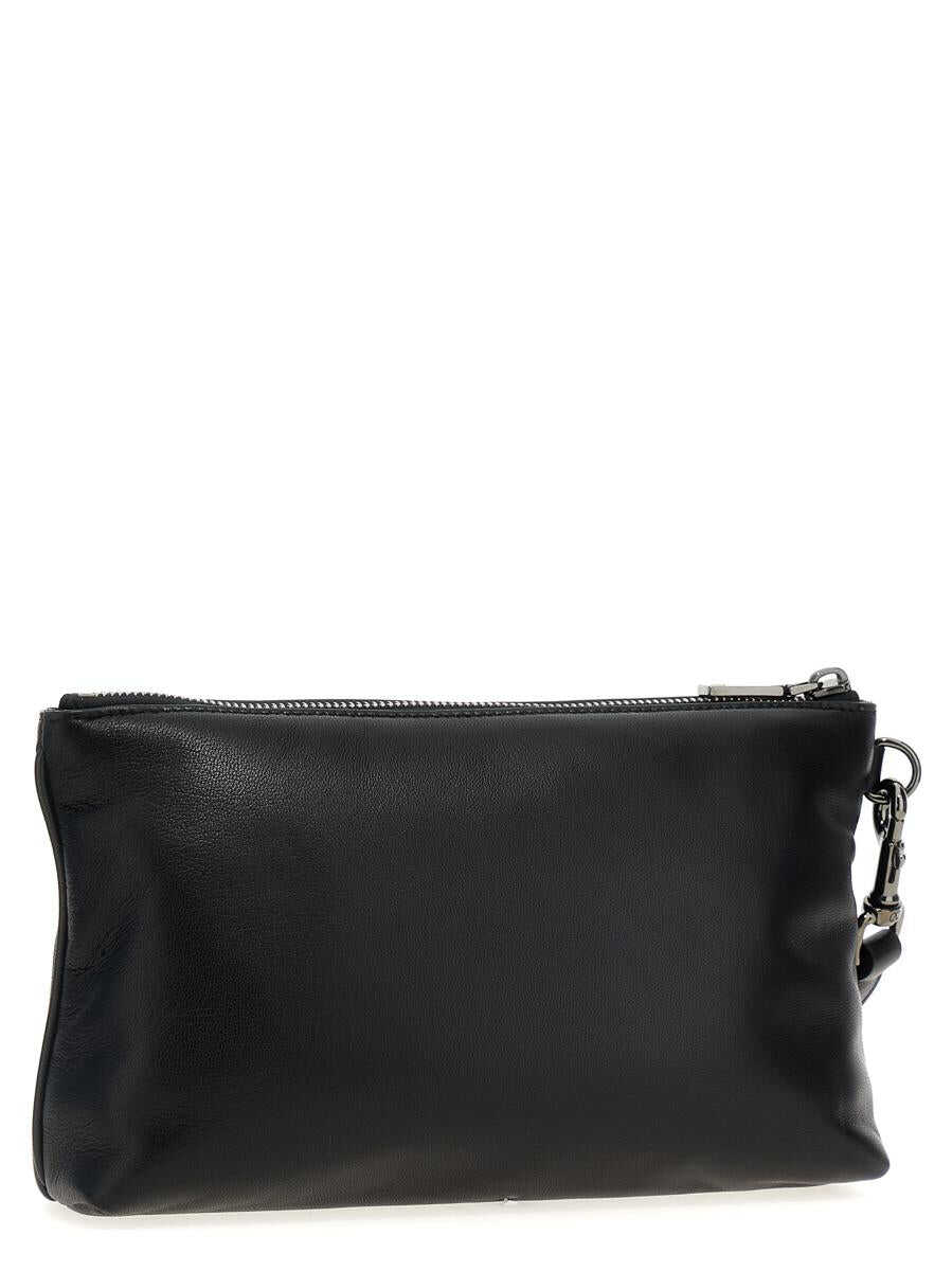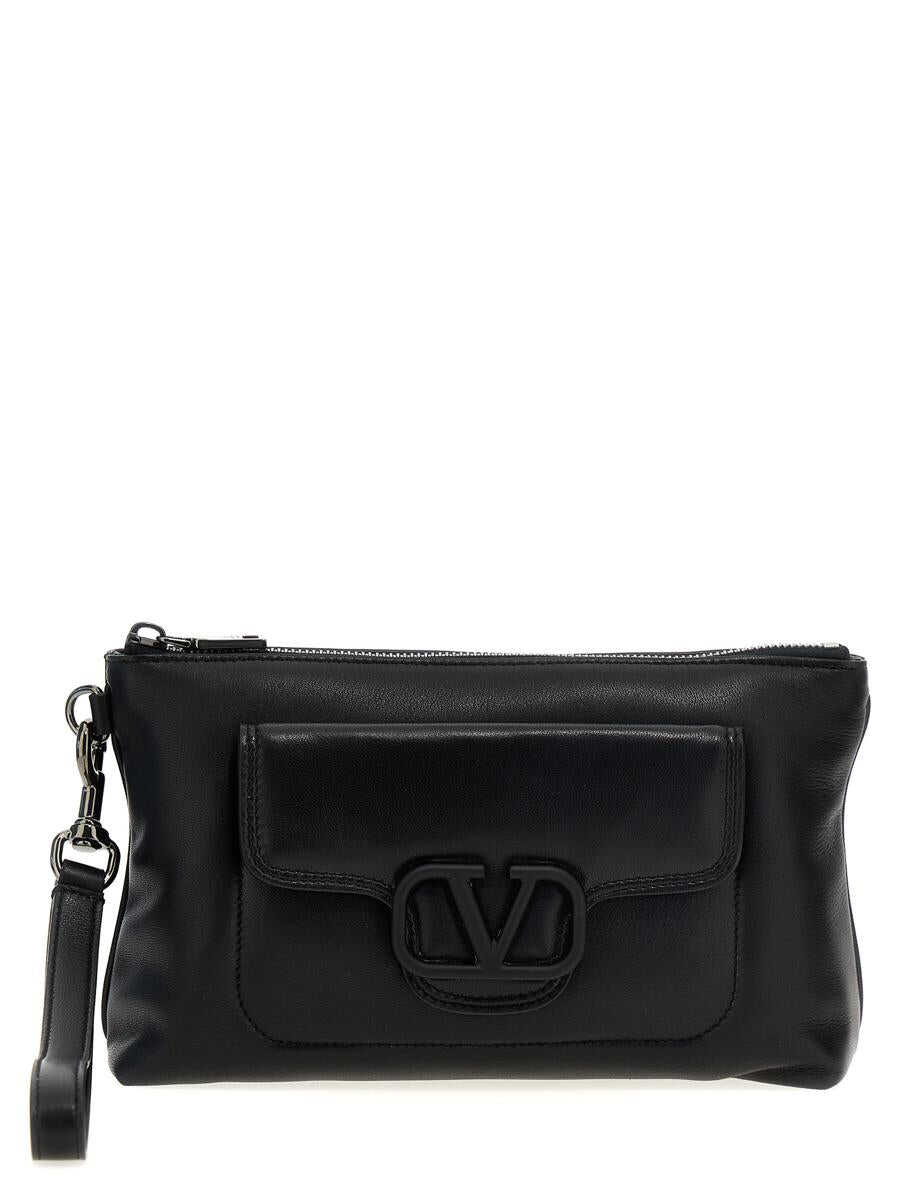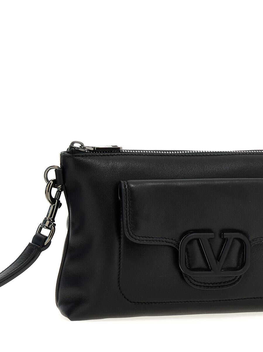 Nappa clutch bag, zip closure, outer pocket with flap closure, tonal 'VLogo Signature' detail, removable wrist handle