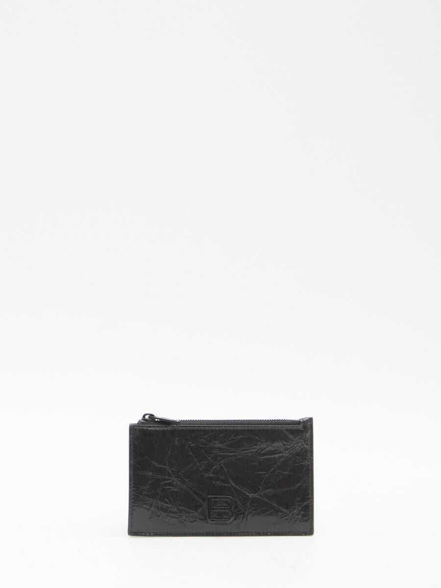 Cardholder in black Crush calfskin with black metal "B" on the front. It features one zipped coin pocket, one flat pocket and five card slots. Any leather imperfections are not to be considered manufacturing defects, but a peculiarity of the material.