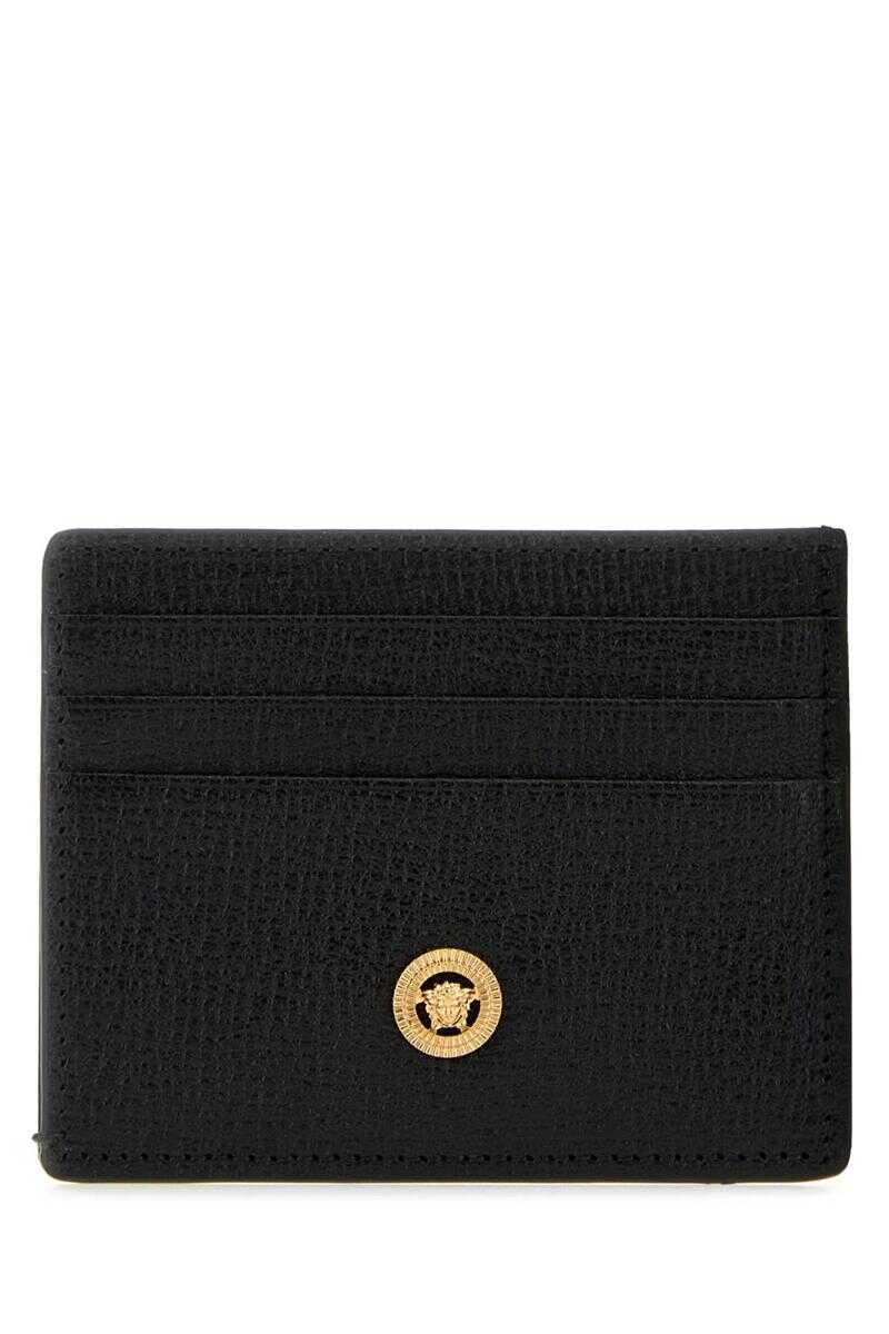 Black leather Medusa Biggie card holder Width: 10 cm Height: 7 cm