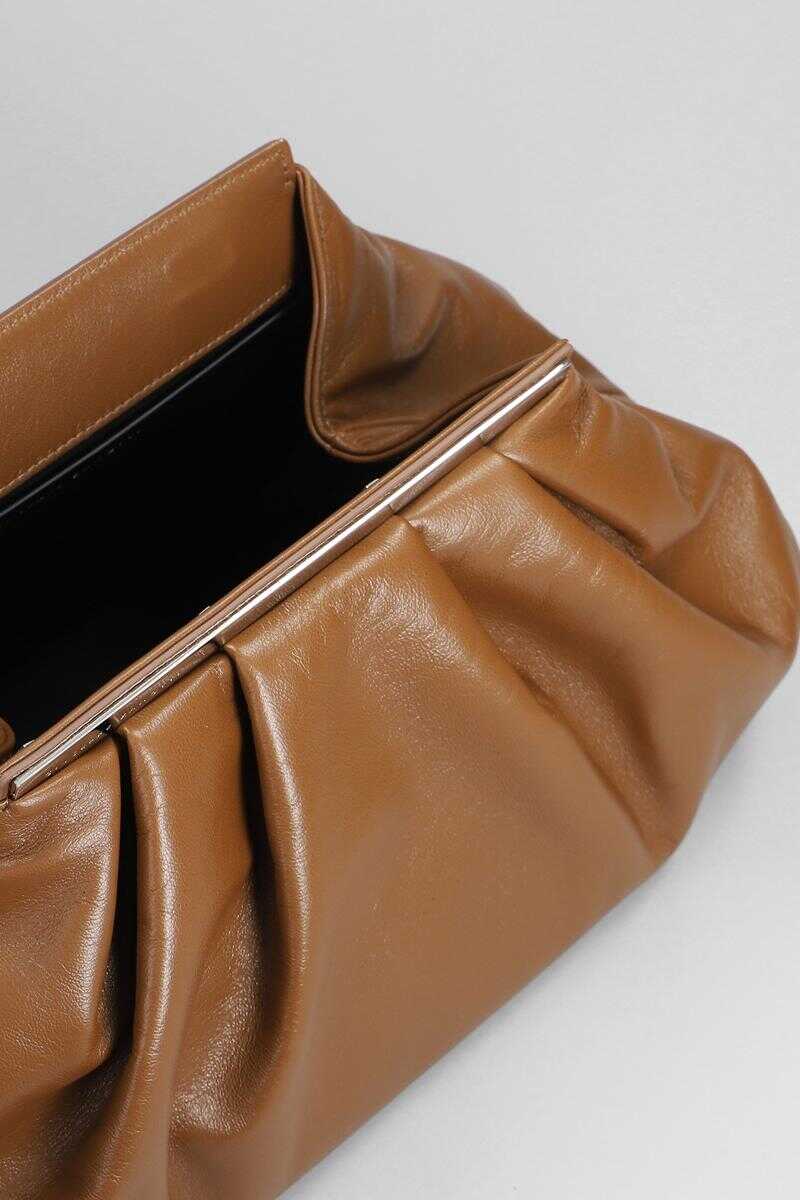 Clutch in leather color leather, Height 170 mm, Width 370 mm, draped, snap closure, internal pocket, metal details, 100% leather, Made in Italy