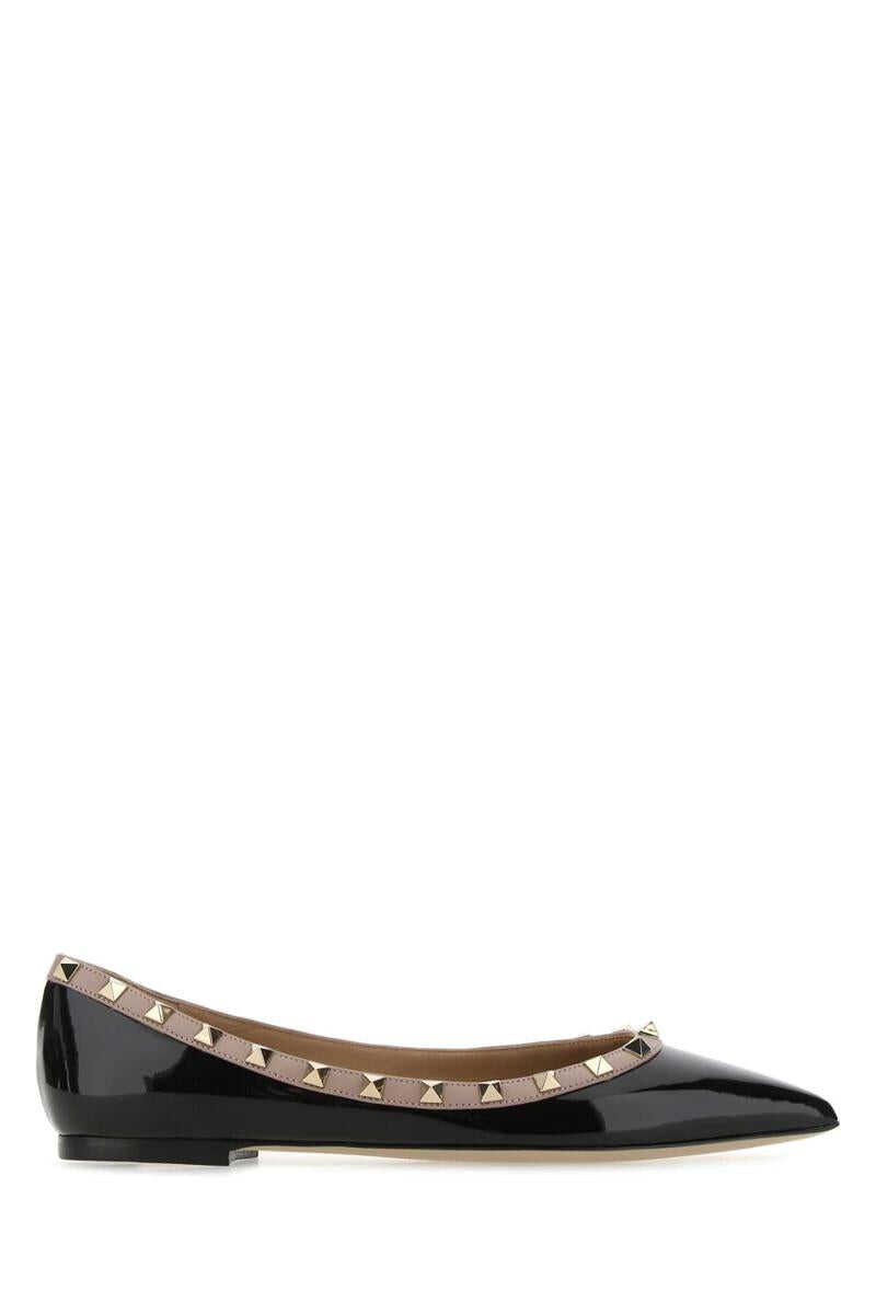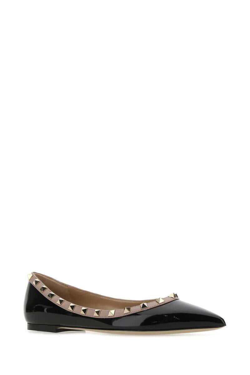 Black leather Rockstud ballerinas