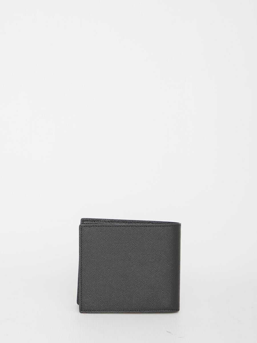 East/West wallet in black texturized calfskin with embossed Saint Laurent Paris logo on the front. It features eight card slots, two bill compartments and two receipt compartments. Any leather imperfections are not to be considered manufacturing defects, but a peculiarity of the material.