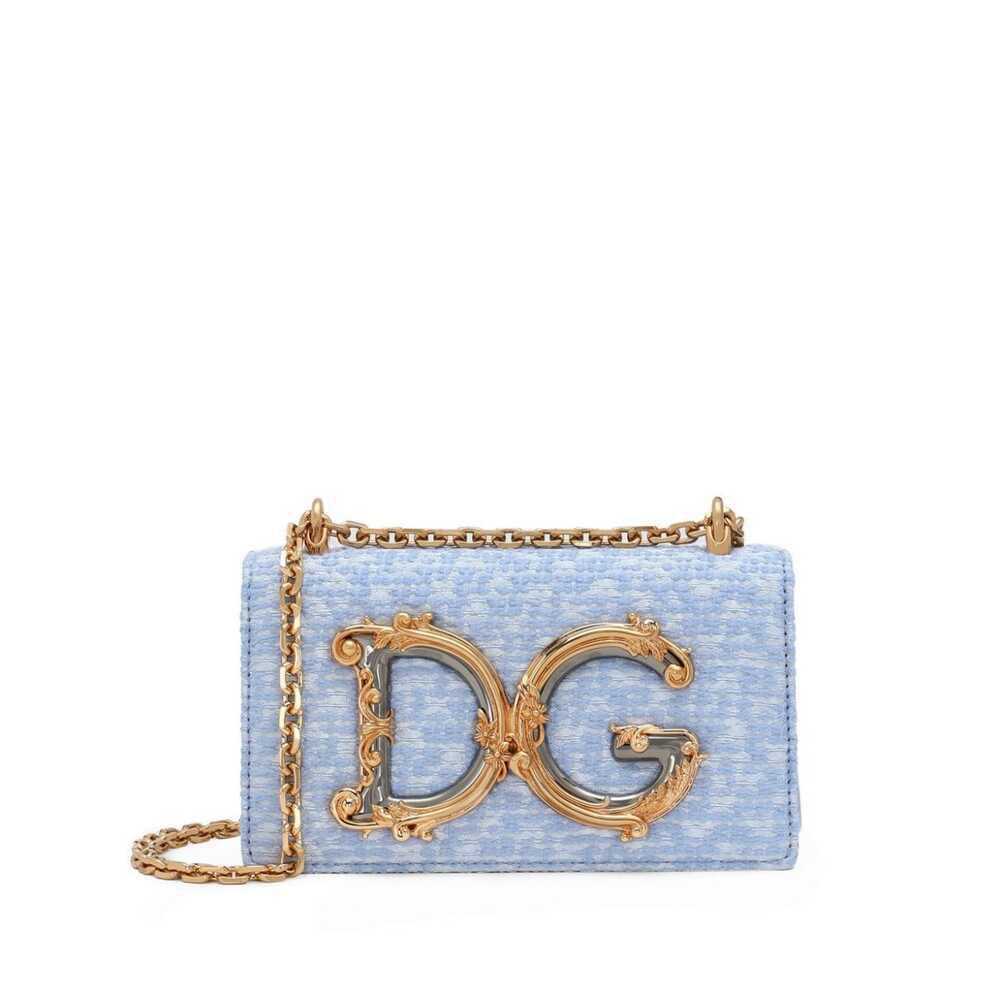 Sky blue virgin wool blend bouclé construction gold-tone hardware appliqué logo foldover top with magnetic fastening chain-link shoulder strap main compartment internal card slot this piece comes complete with a protective dust bag.