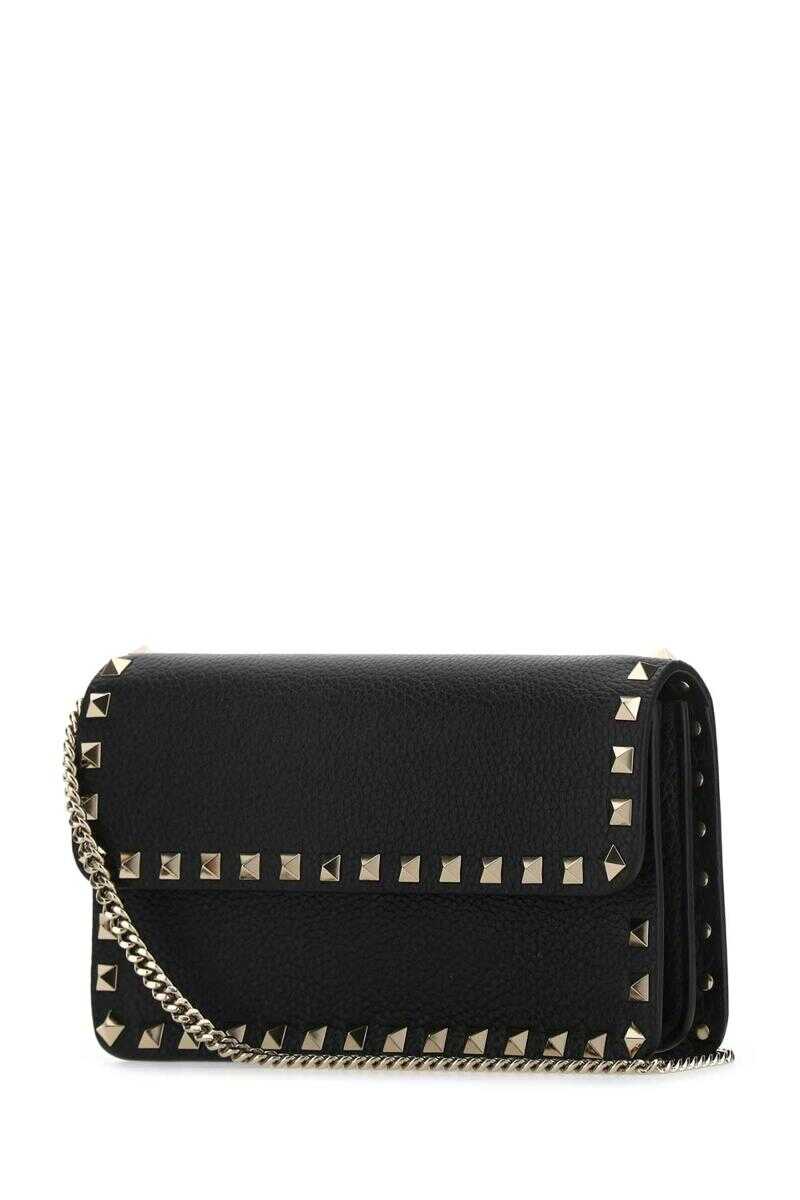 Black leather Rockstud clutch Width: 21 cm Height: 12 cm Depth: 4 cm Shoulder strap length: 56 cm