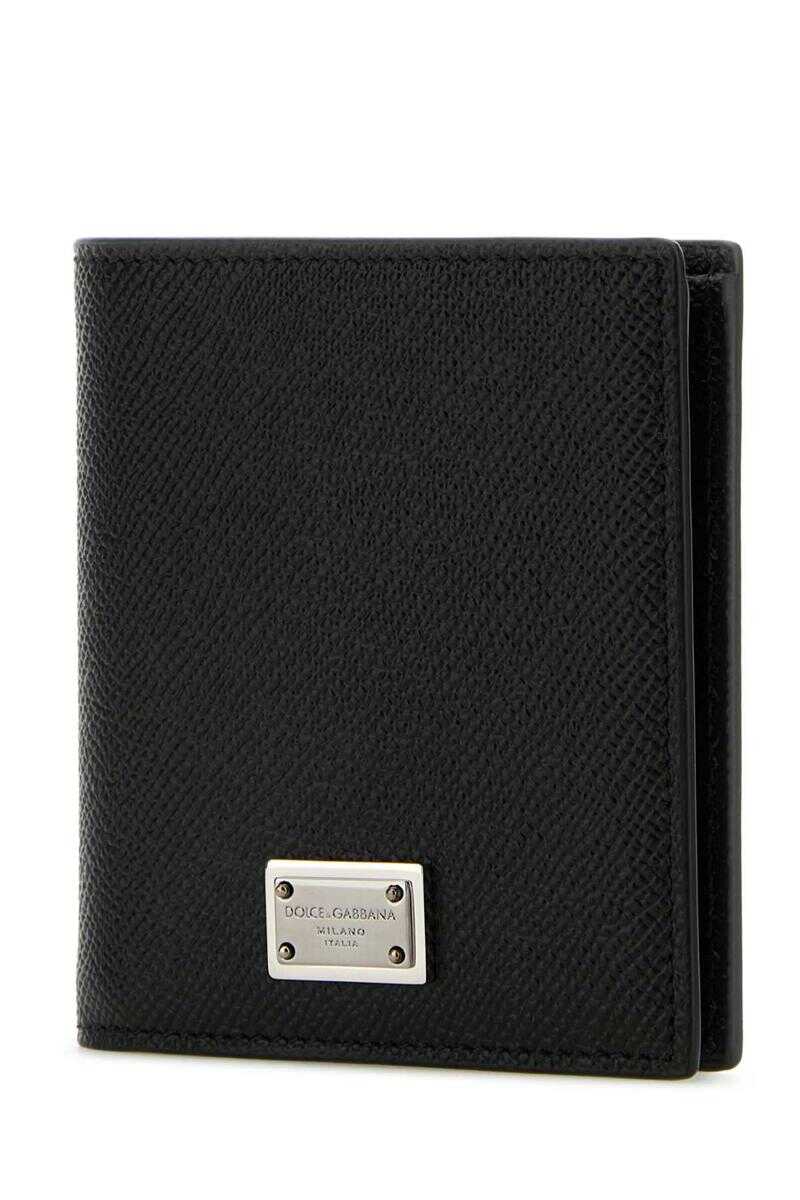 Black leather wallet Width: 8,5 cm Height: 10 cm Depth: 2 cm
