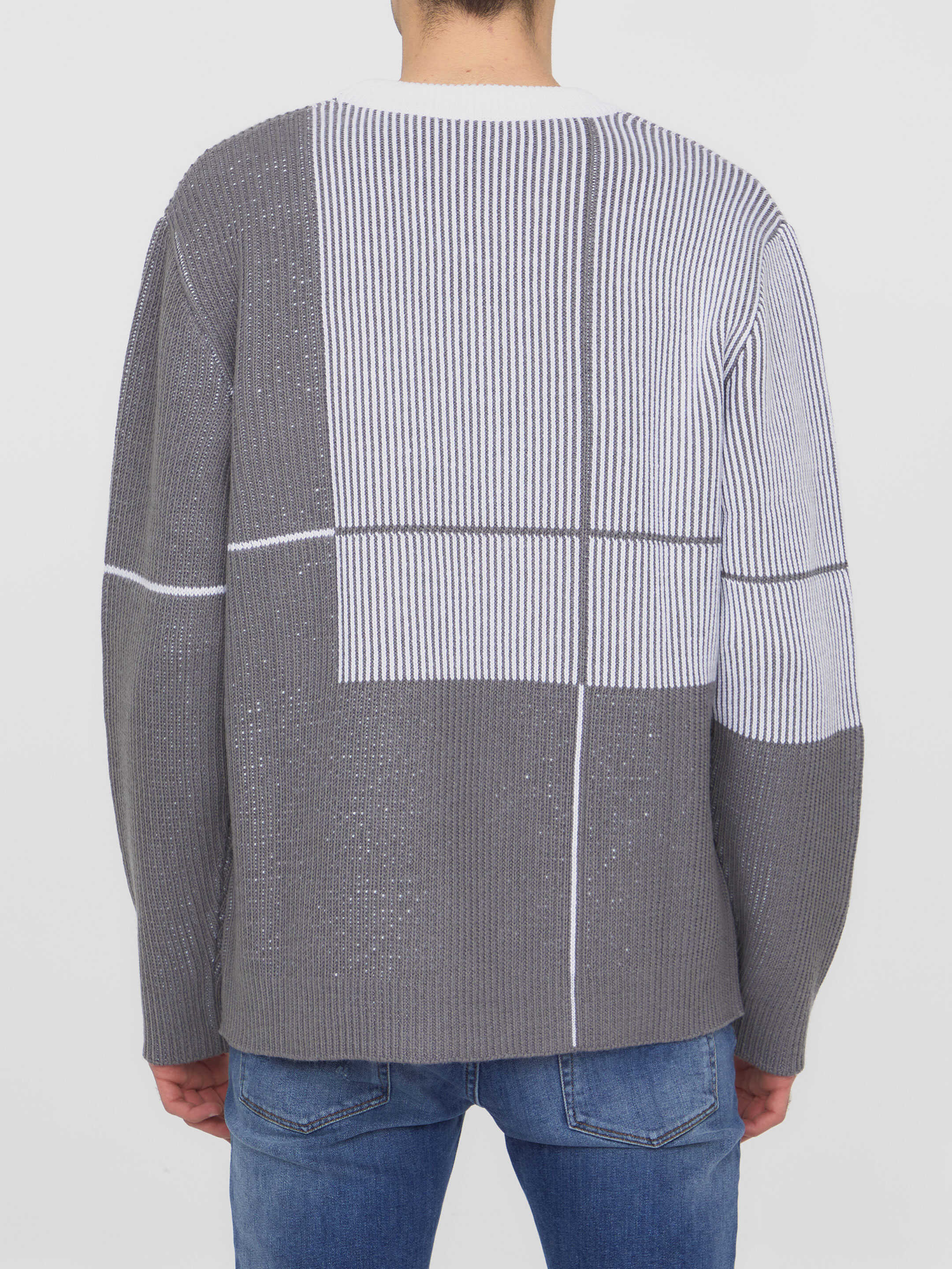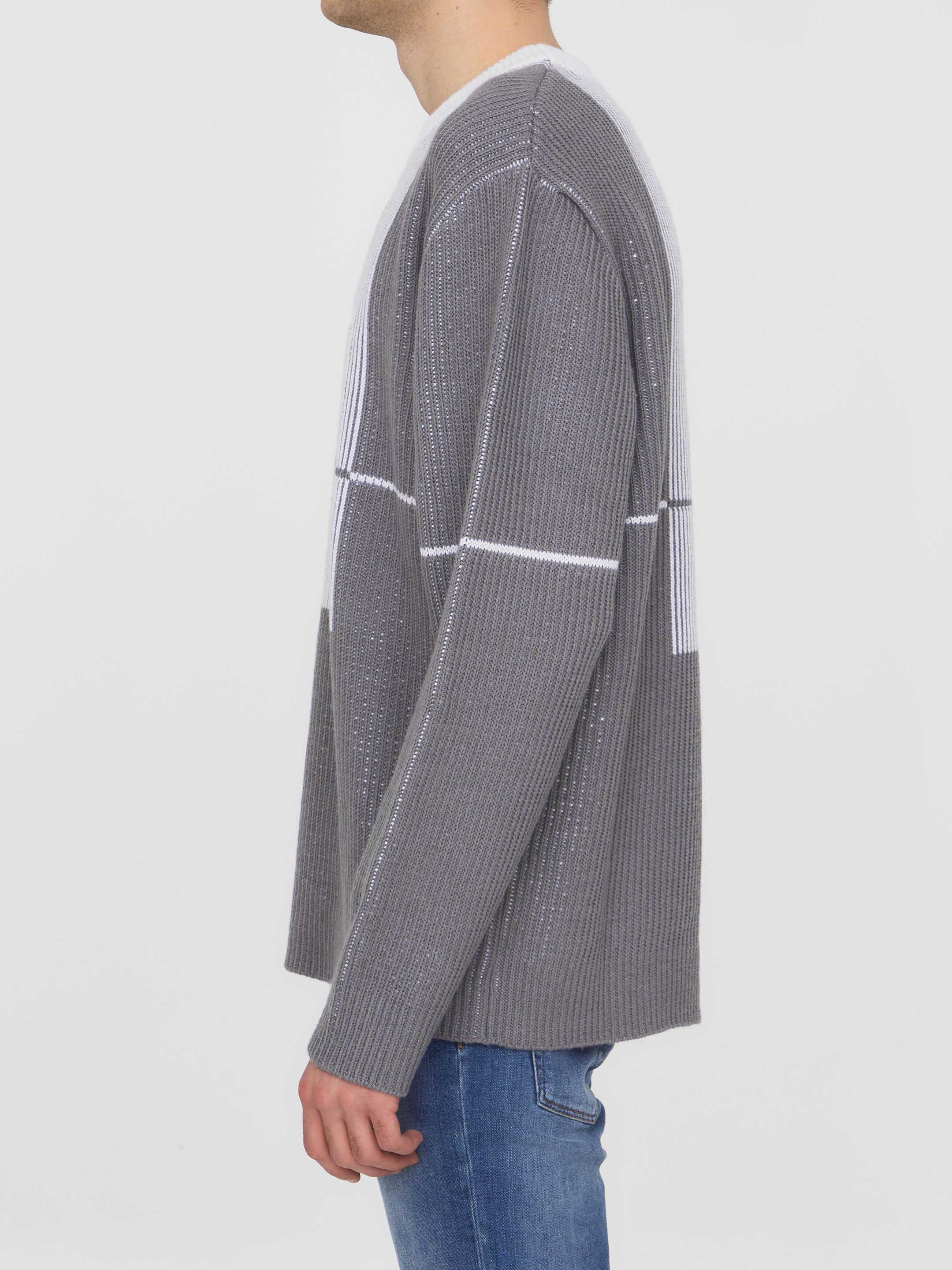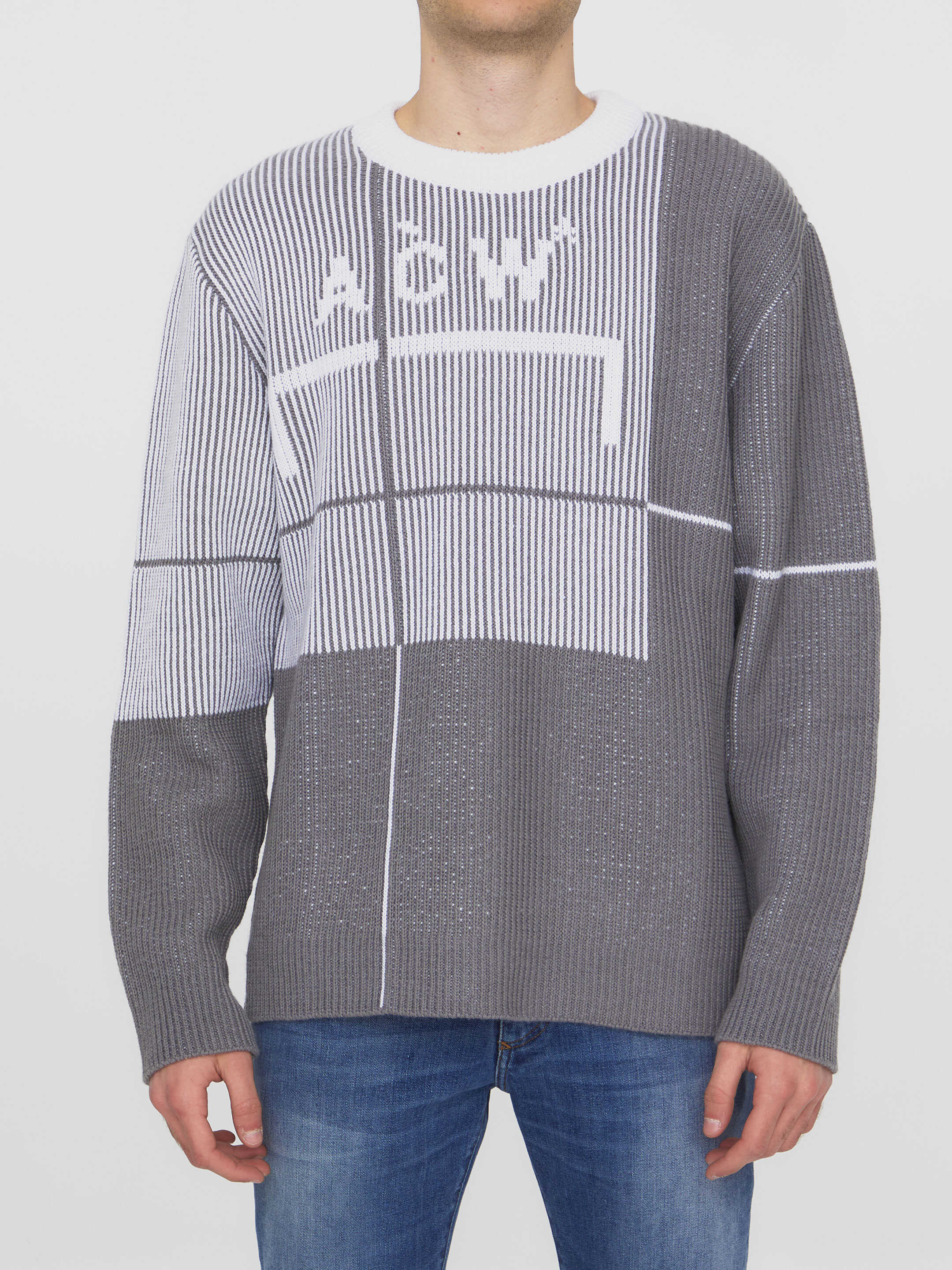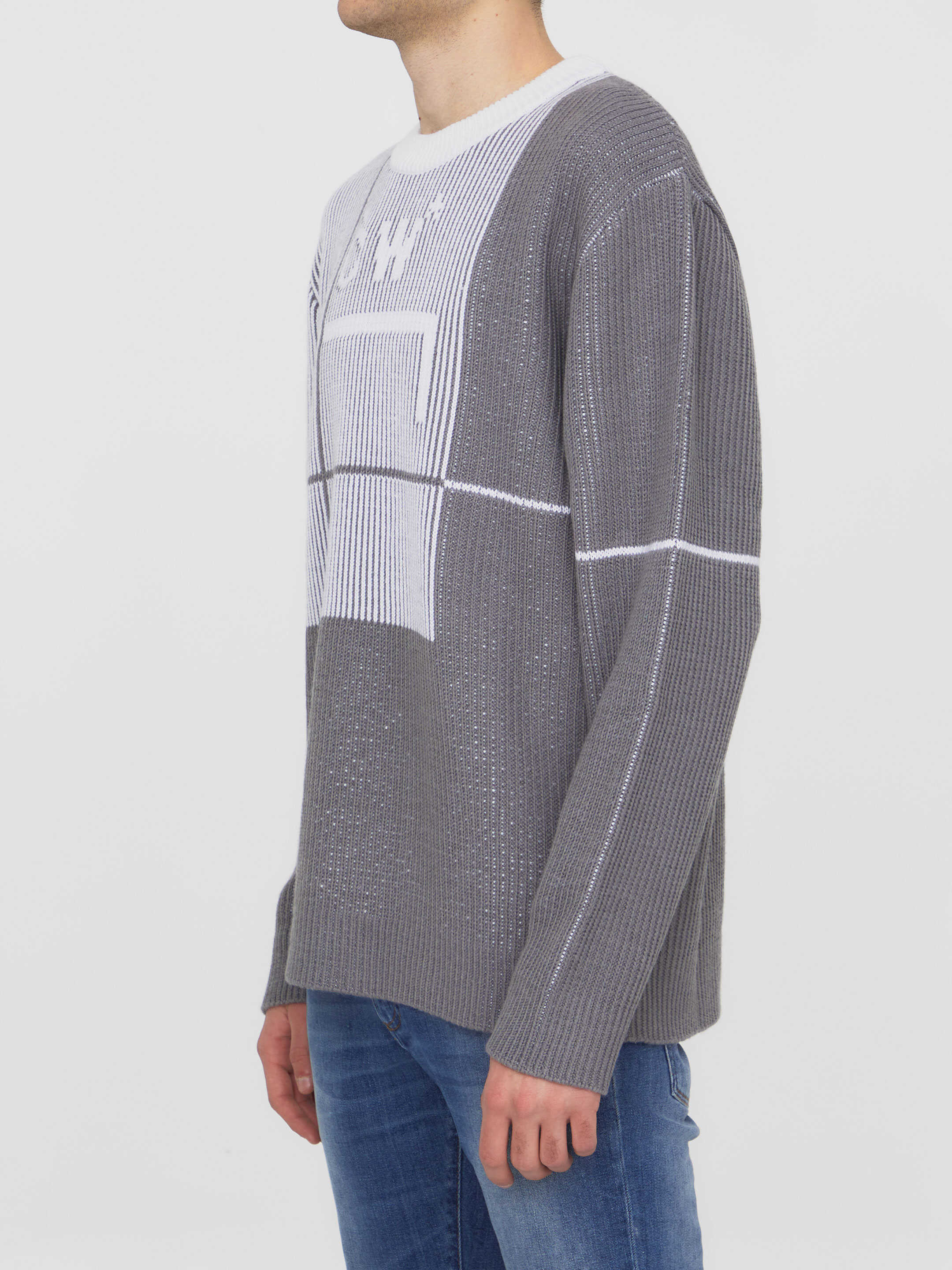 Long-sleeved crewneck Grid sweater in knitted wool blend in the shades of grey with ACW logo embroidered on the front. Ribbed neck, cuffs and hem.
