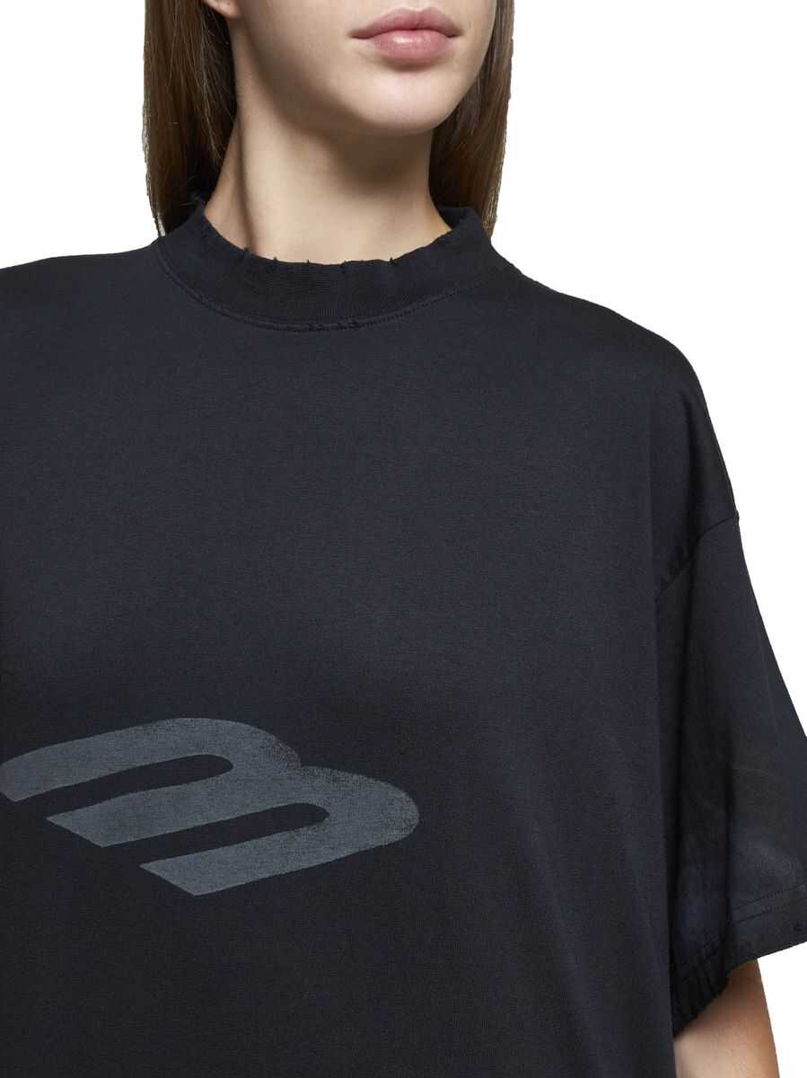 Balenciaga’s oversized unisex t-shirt in distressed effect faded black cotton featuring a crew neck, dropped shoulders and logo printed on the chest.