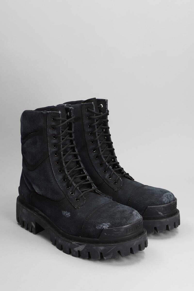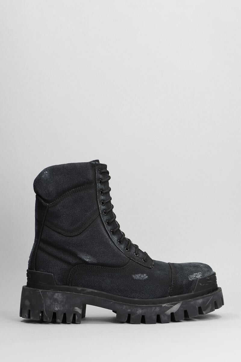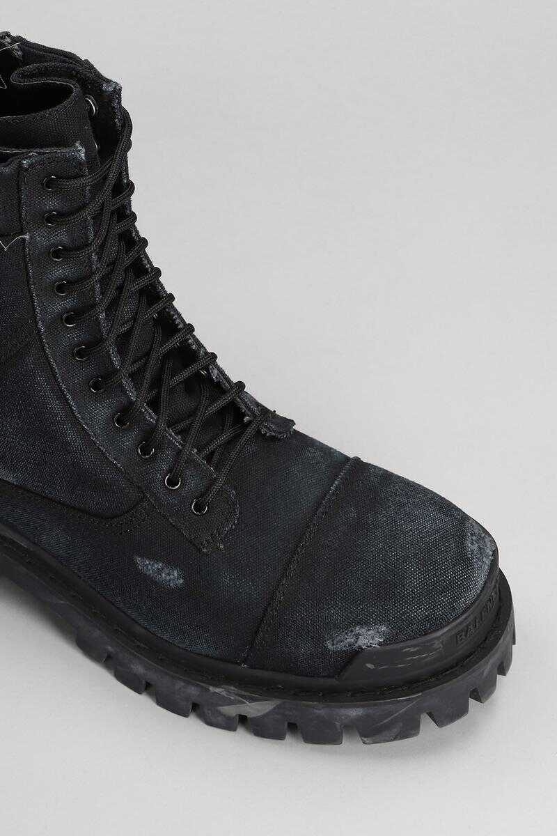 Combat strike canvas Combat boots in black cotton, laces, round toe, side zip closure, destroyed effect, logo on sole, combact rubber sole, rubber outsole, Made in Italy, 60 mm heel
