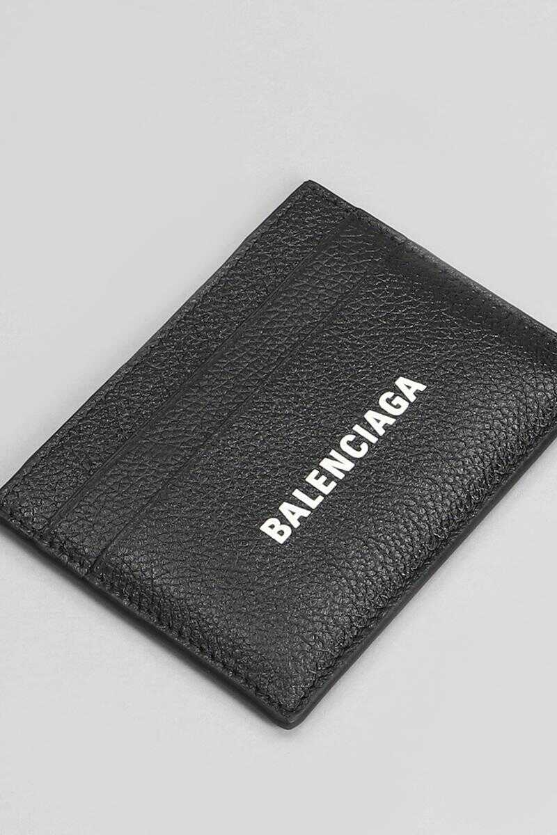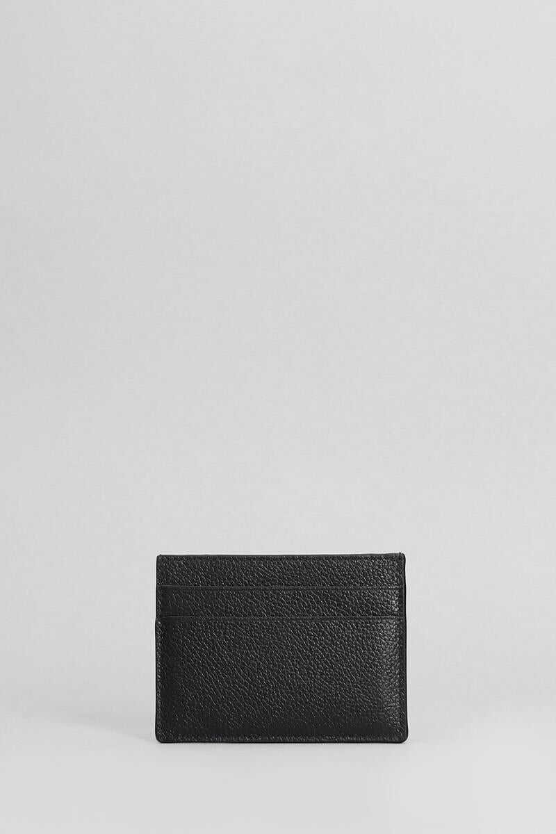 Wallet in black leather, Height 75 mm, Width 100 mm, Height 75 mm, front logo, textured leather, cards slots, Made in Italy, 100% leather