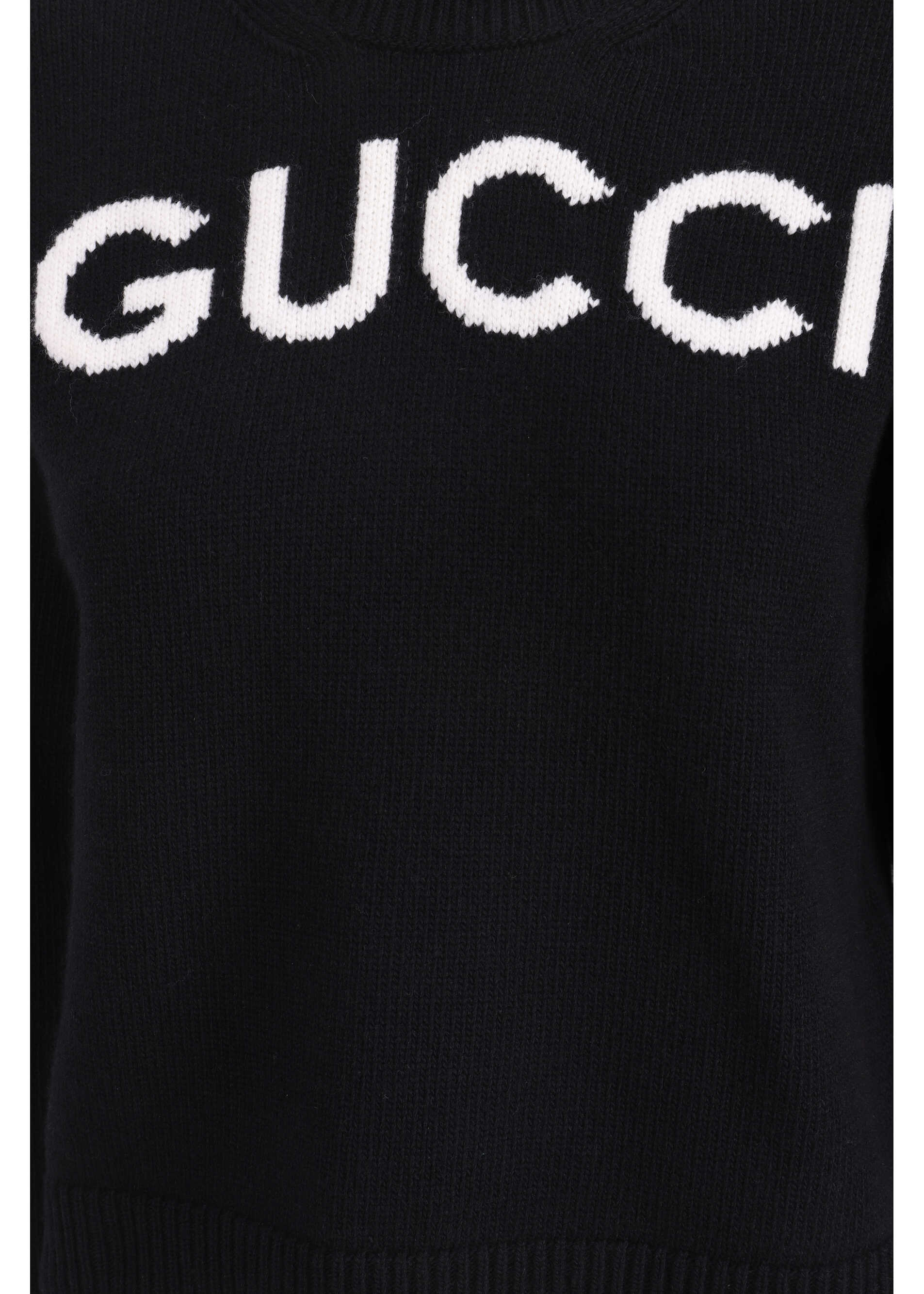 Wool Sweater by Gucci, ribbed crew neck, ribbed cuffs, ribbed hem, iconic brand monogram stitched in contrast on front, monochrome pattern, regular fit.