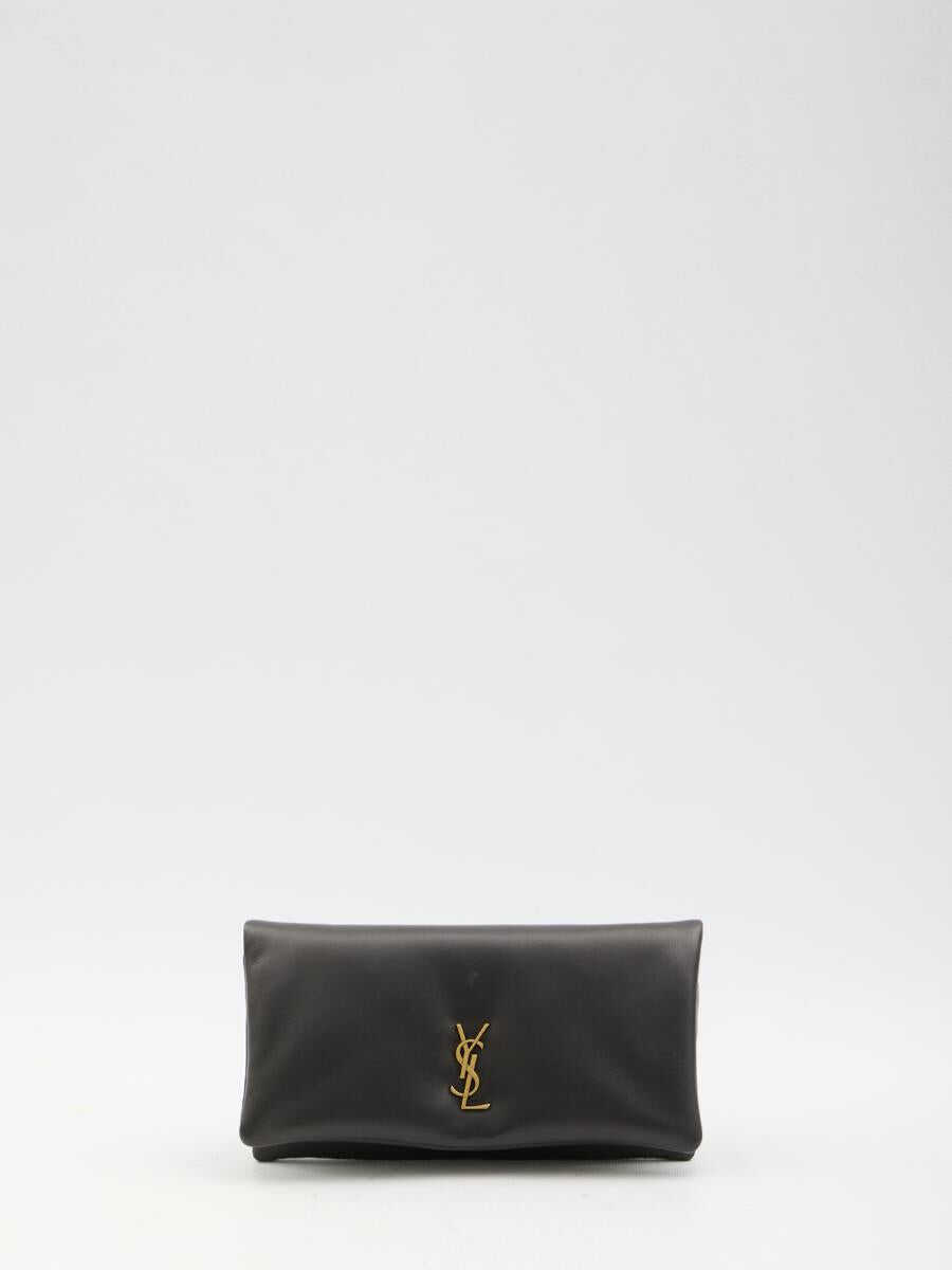 Calypso mini bag in soft black lambskin with bronze-tone metal YSL monogram. It features chain shoulder strap, magnetic closure, one main interior compartment, one interior flat pocket and one interior card slot. Cotton lining. Dust bag included. Any leather imperfections are not to be considered manufacturing defects, but a peculiarity of the material.