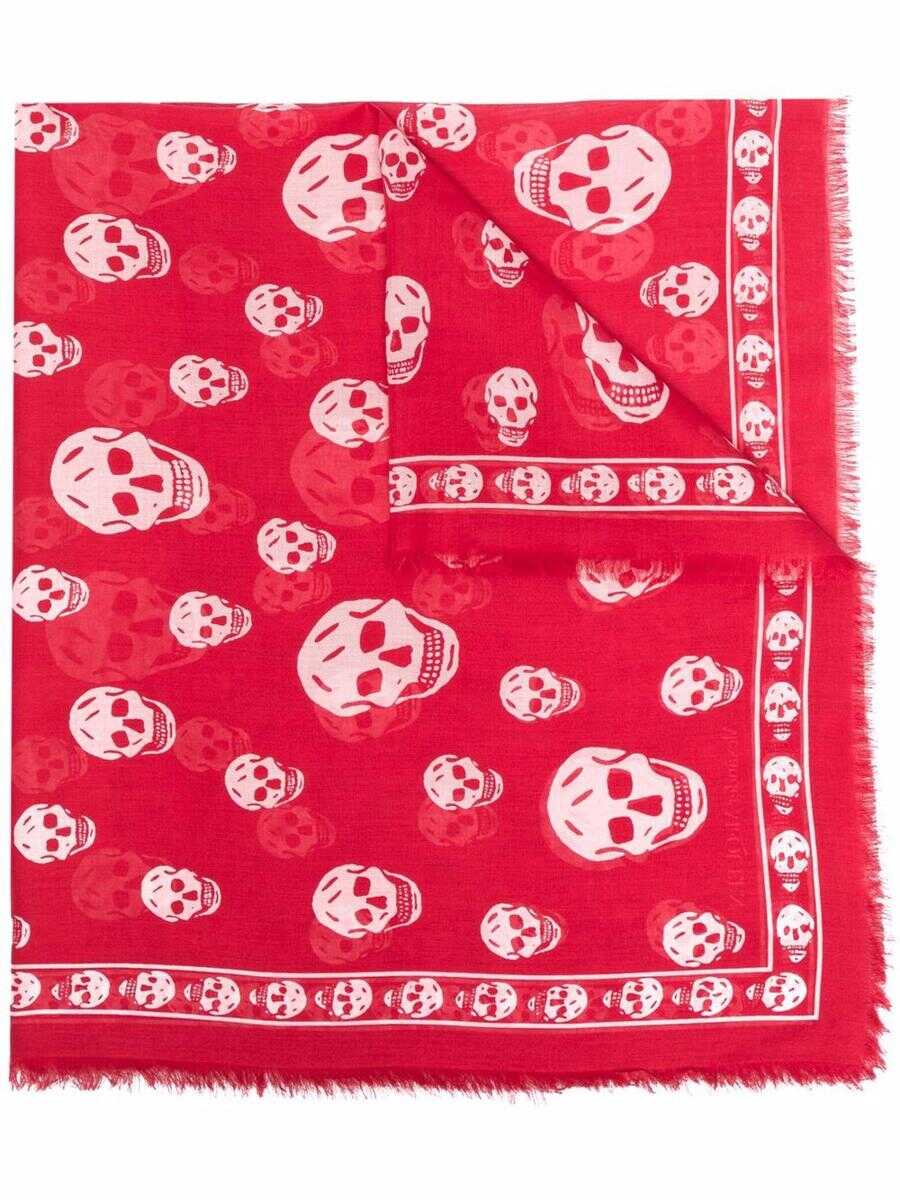 - Alexander McQueen - Women - 'Skull' scarf - Red and white - Skull print - Fringed edges