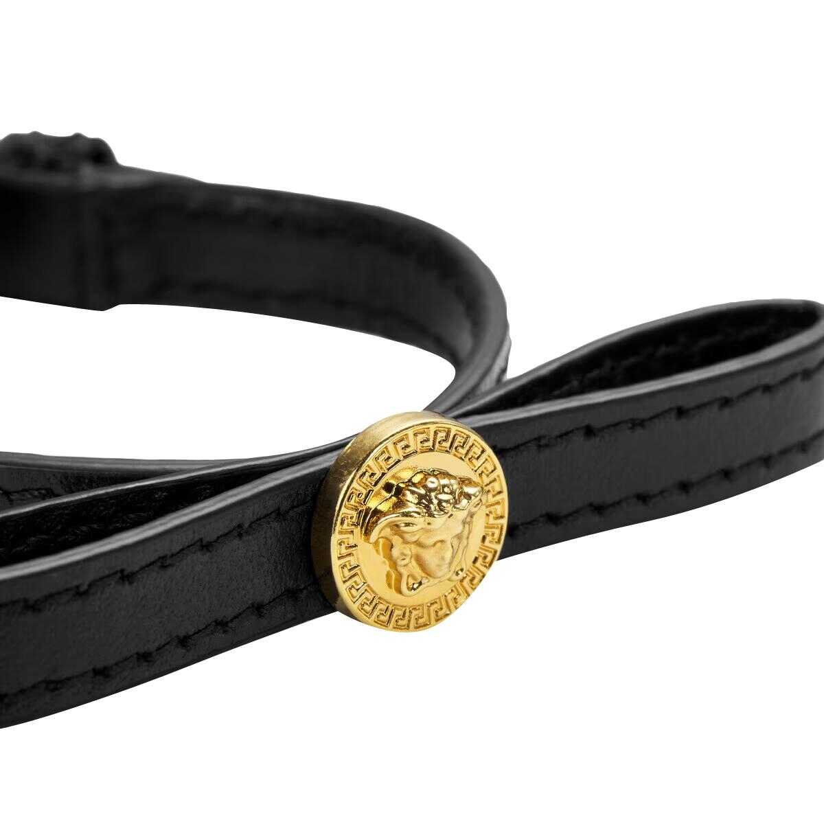 Versace Black Medusa Leather Bracelet, Buckle Closure, Frontal Golden Logo, UNI SIZE