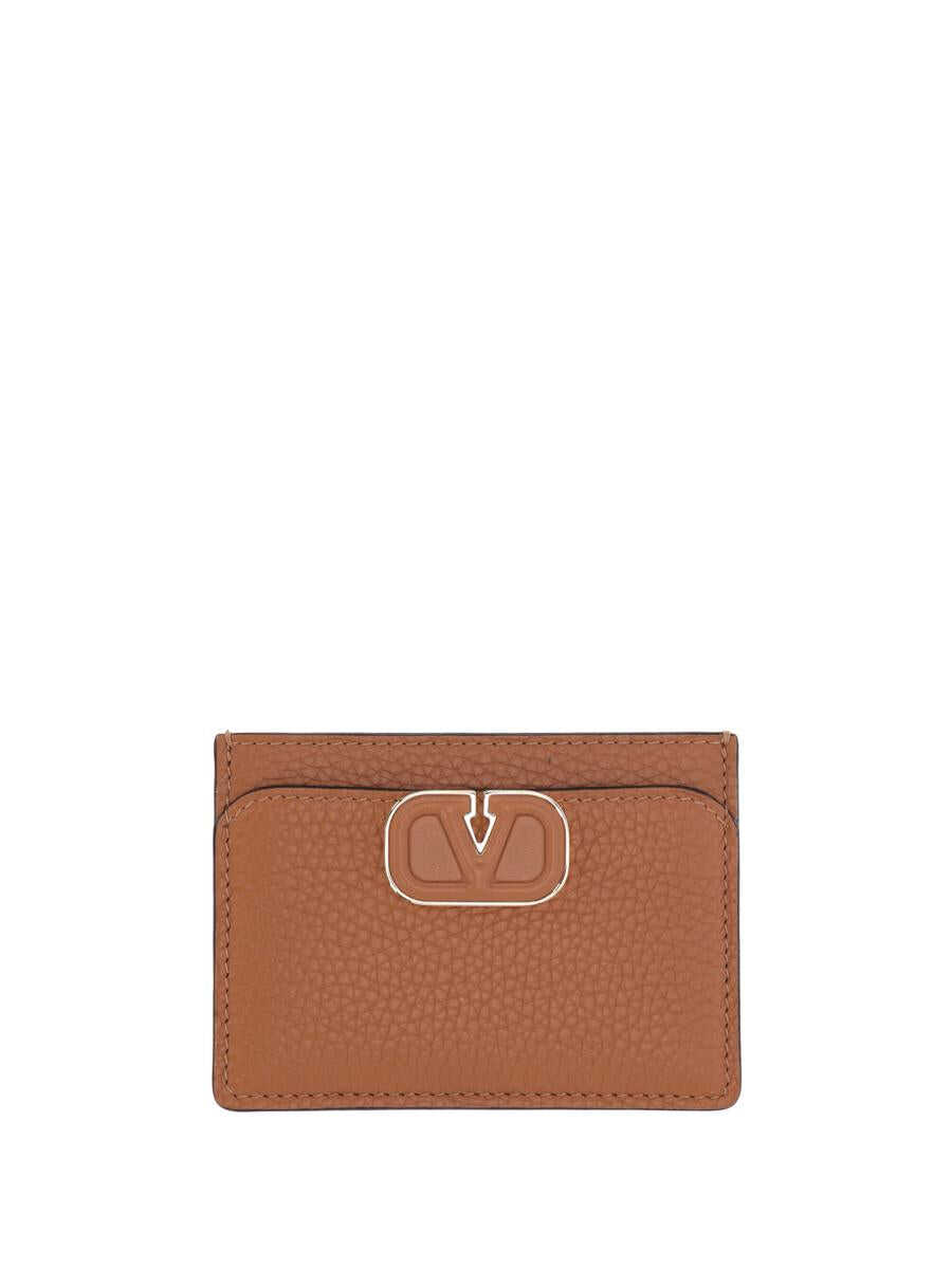 Card holder by Valentino Garavani in brown leather featuring a Vlogo plaque, a front compartment, three card slots on the back and a central slot. Length: 11.0 Centimetres WIDTH: 8.0 Centimetres