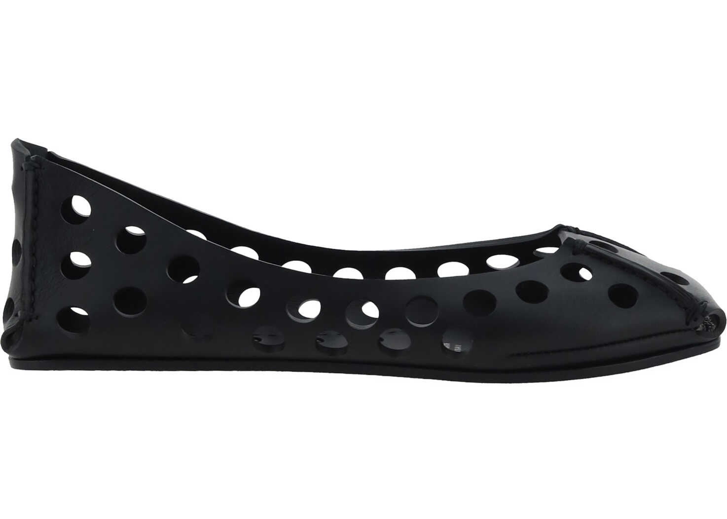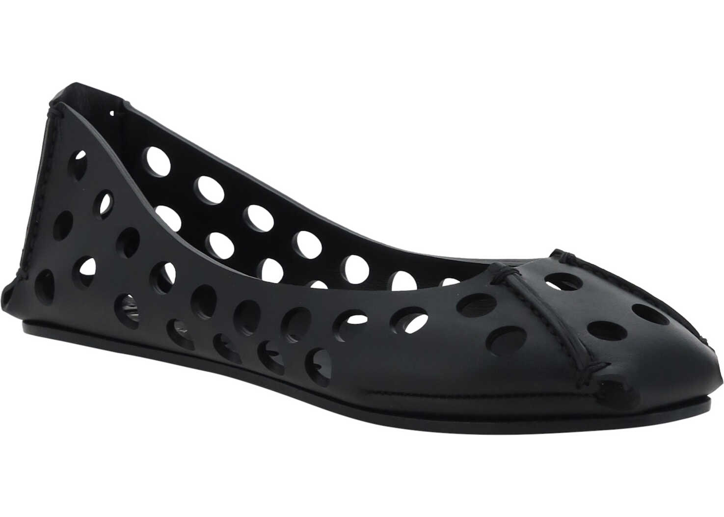 Leather Ballerinas by Alaïa, square toe all-over circular cut-out details, flat sole, logoed insole.