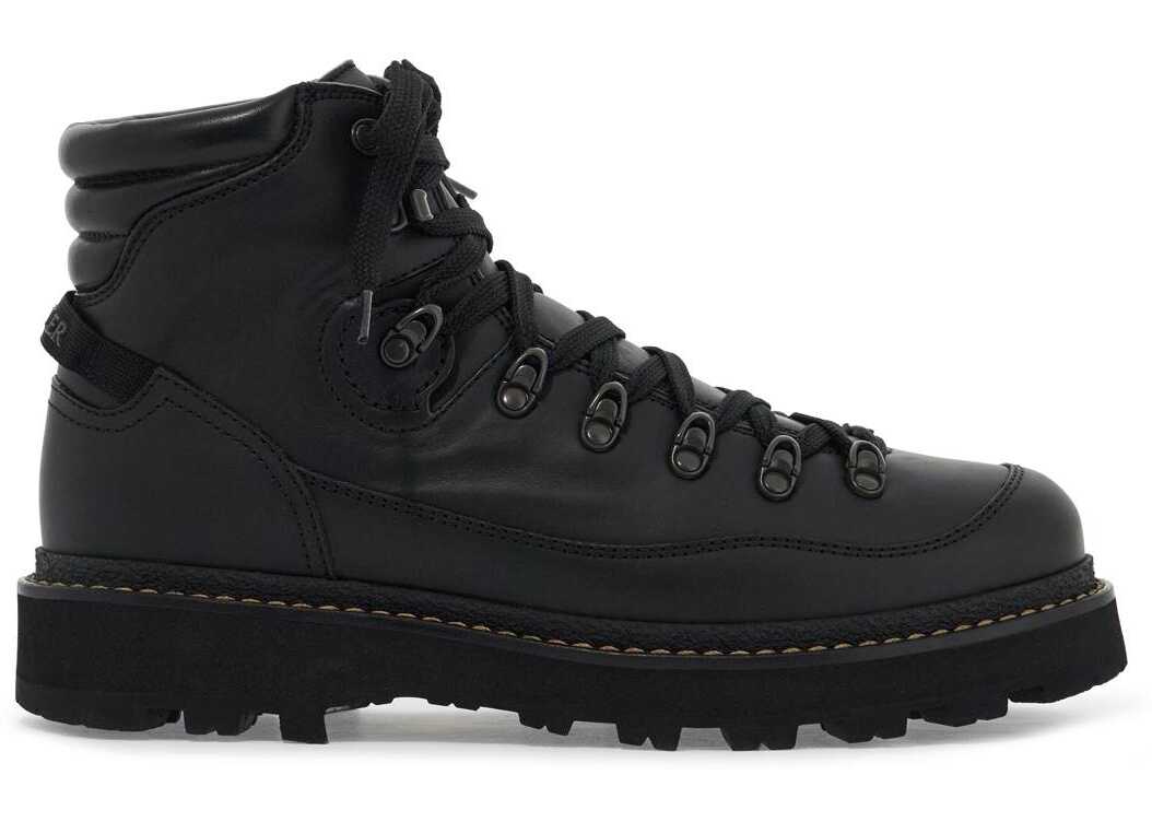 The Moncler Basic Peka Trek boots are made of smooth leather and feature classic trekking details: hooks on the lacing, padded quilted ankle, and a branded back loop. They also have reinforced toe caps, an embossed logo on the tongue, a leather-lined interior with a removable insole, a micro rubber midsole, and a Vibram rubber sole.
