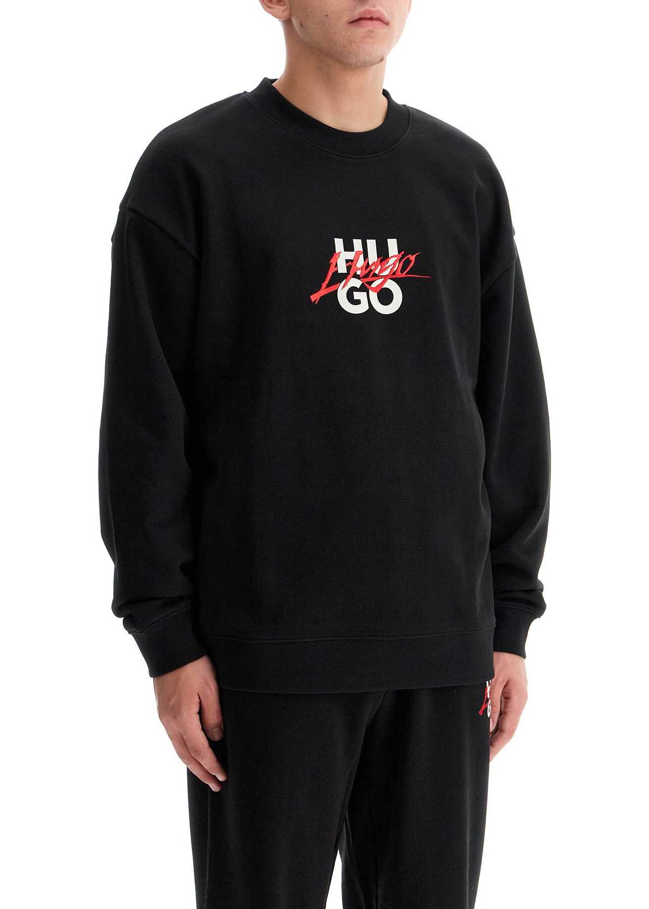 The Hugo crewneck sweatshirt is made of medium-weight slub cotton jersey and features a printed and embroidered logo graphic in the center of the chest. Finished with ribbed edges, it has an oversized fit. The model is 182 cm tall and wears size M.