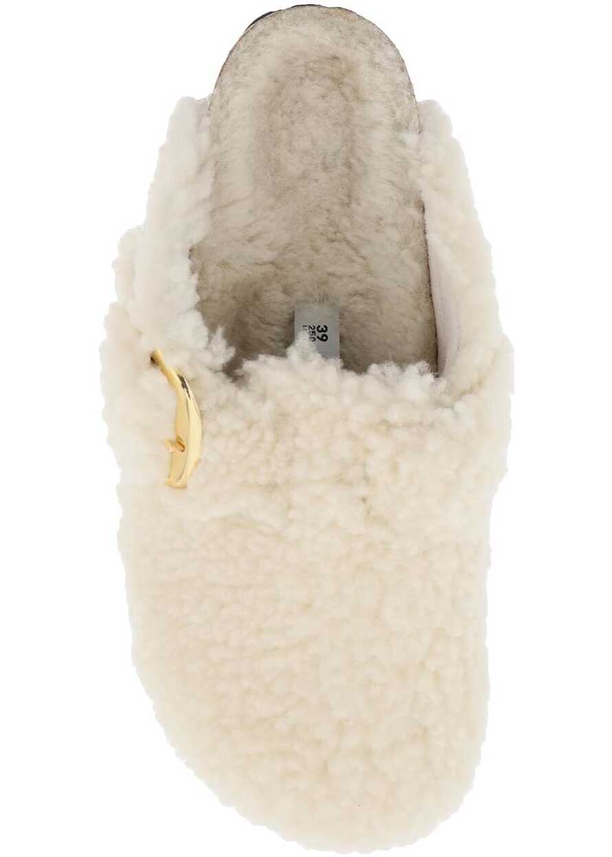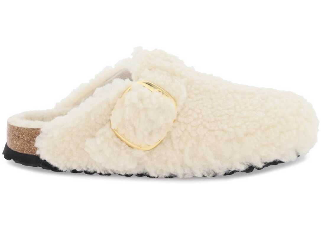 BIRKENSTOCK Boston clogs crafted in shearling. Adjustable strap with gold metal maxi buckle with debossed logo. Suede leather footbed, latex and cork moulded sole and EVA tread. Narrow fit.