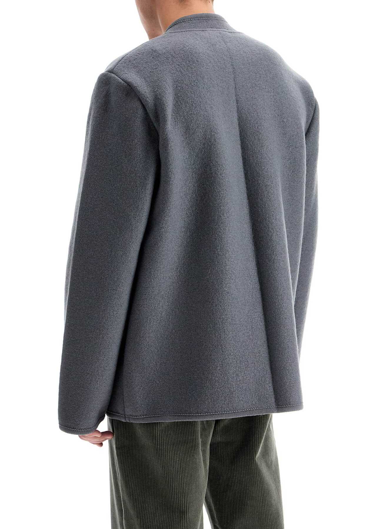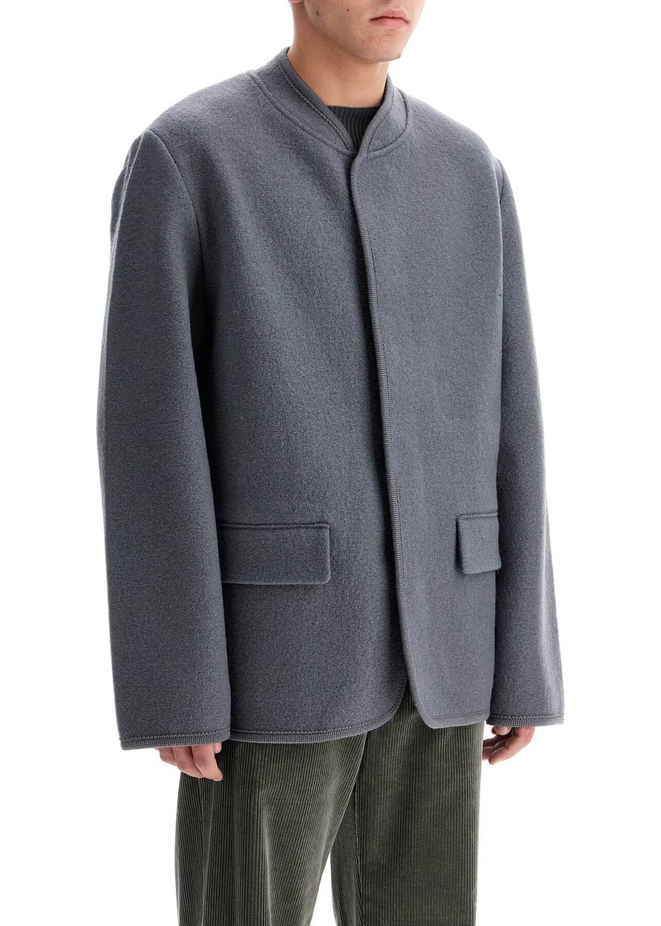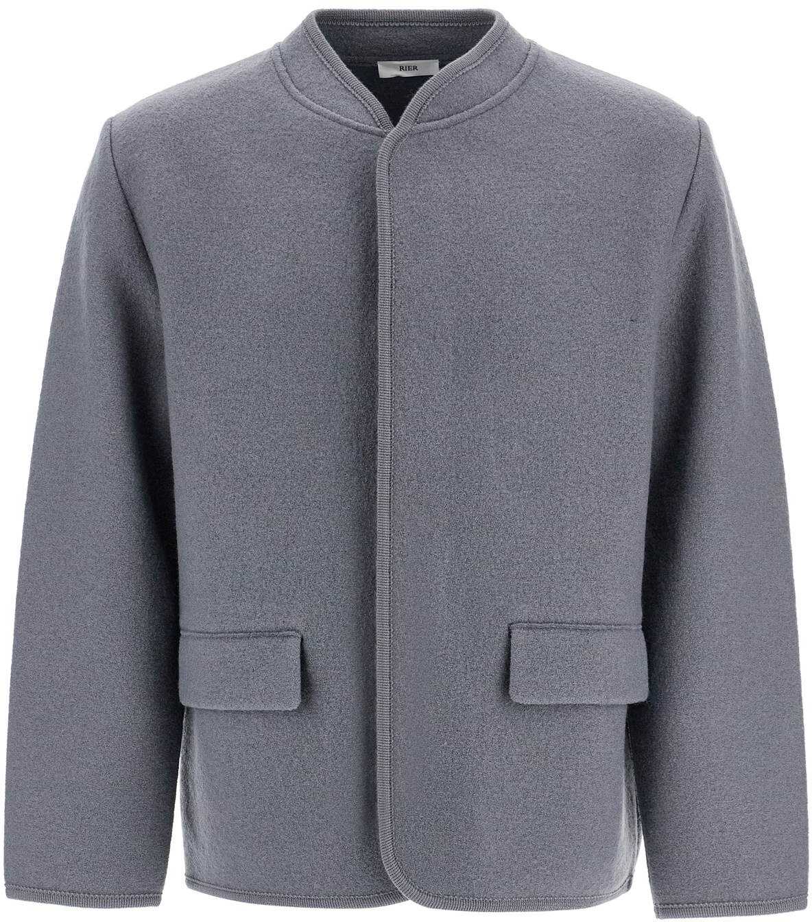 The Walker single-breasted short coat by Rier is made of lightweight wool felt. It features hidden button closure, tone-on-tone embroidered trims and flap pockets. Boxy fit. The model is 182 cm tall and wears size M.