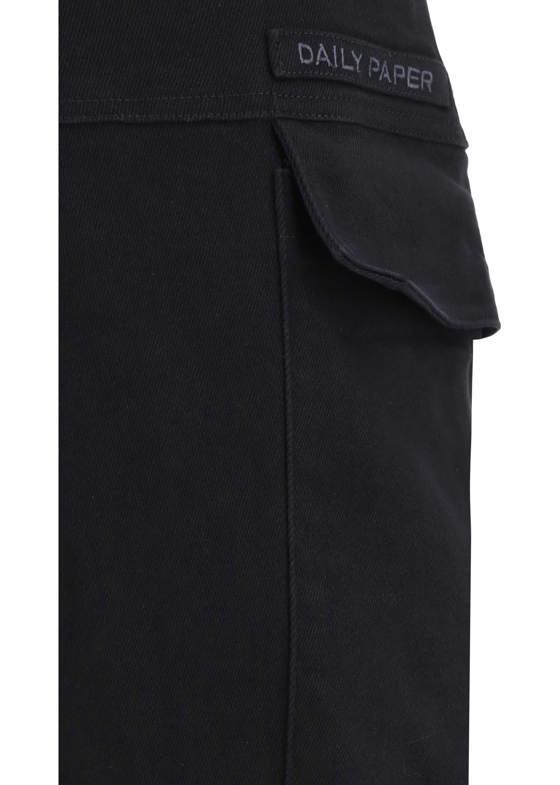 Ezea Cotton Cargo Pants by Daily Paper, mid-rise waist, front button and zipper closure, two side slash pockets, two welt pockets with flap at back, waistband loops, two cargo pockets on side panels, iconic brand monogram on front, regular fit.