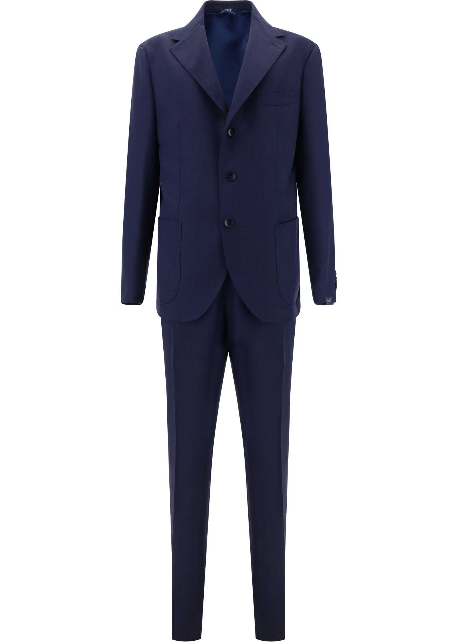 Gi Capri's virgin wool Suit is a refined and elegant ensemble consisting of a blazer jacket and pants, both in a sophisticated mélange pattern. The jacket features a single-breasted front button closure, two welt patch pockets on the front and a slit pocket for a practical touch. Classic lapels complete the look, giving the jacket a timeless design. The classically cut pants feature a front zipper and button closure, two side slash pockets and two welt pockets on the back. Belt loops on the waistband allow you to further customize the fit.