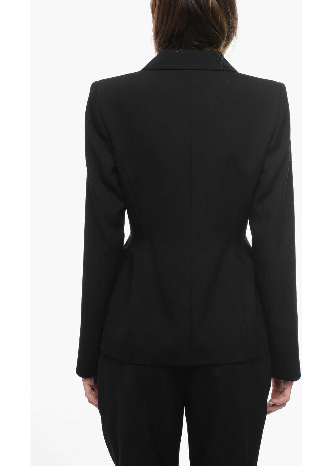 Single-breasted jacket 2 pockets Bejeweled buttons Black Lined Flap pocket Made in Italy Autumn-Winter Materials: 100%VW Product code: P612834