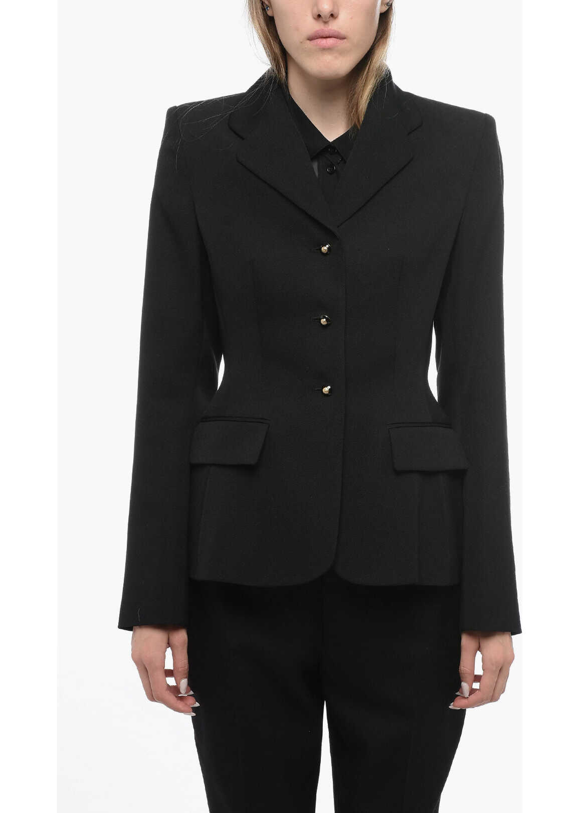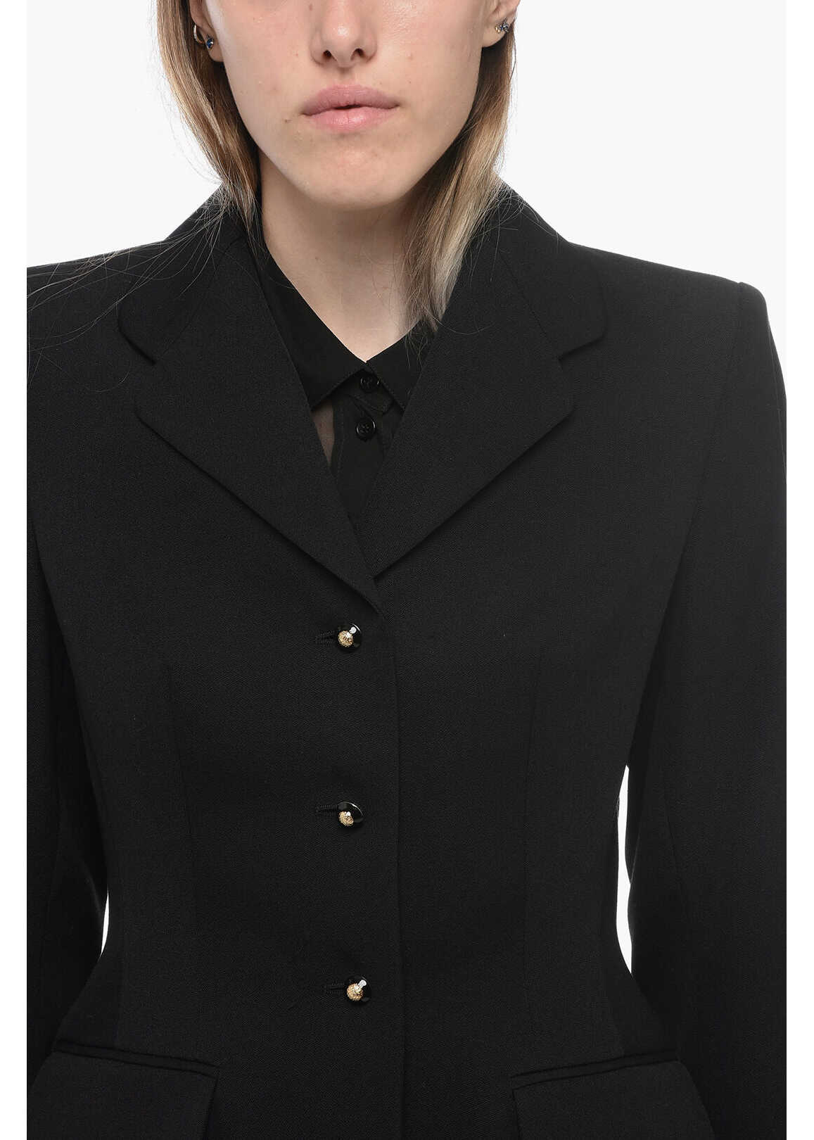 Grain De Poudre Wool Blazer With Decorative Buttons