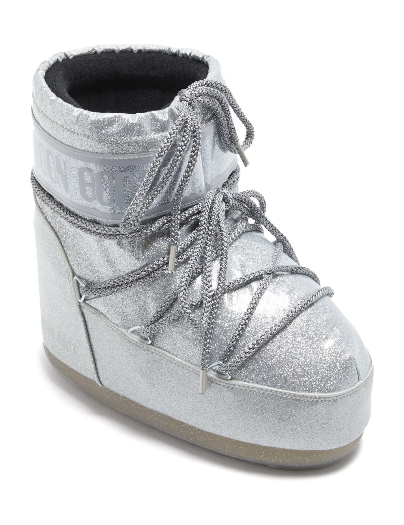 The landing on the moon may have been one small step for man, but for Moon Boot it was a giant leap for footwear. The original Icon model is inspired by the 1969 landing of Neil Armstrong and resembles high-technology astronaut gear - here in the Low Glitter iteration, available in four colours. Insulated and lightweight, these shoes are now the ultimate ski boots worldwide due to their unique and instantly recognizable ambidextrous design and features like the water-repellent finish and suction pads on the tread sole, that offer ground control.