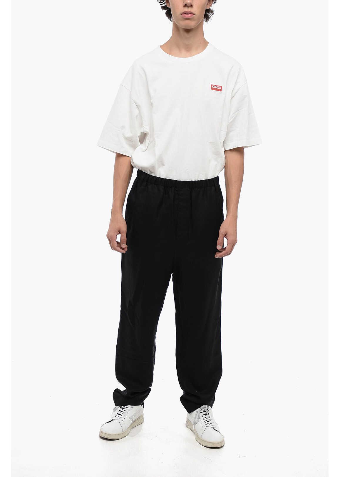 2-Pocket Viscose Blend Pants With Elastic Waistband