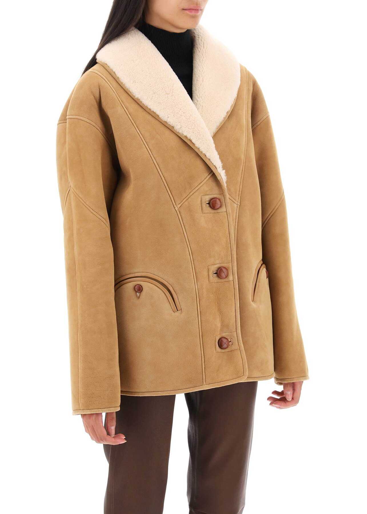 Tatoosh coat by Blazé Milano crafted in shearling with an oversized fit. It features shawl collar, leather coated button closure, buttoned Smiley pockets, piping at front and back. The model is 177 cm and wears a size IT 1.