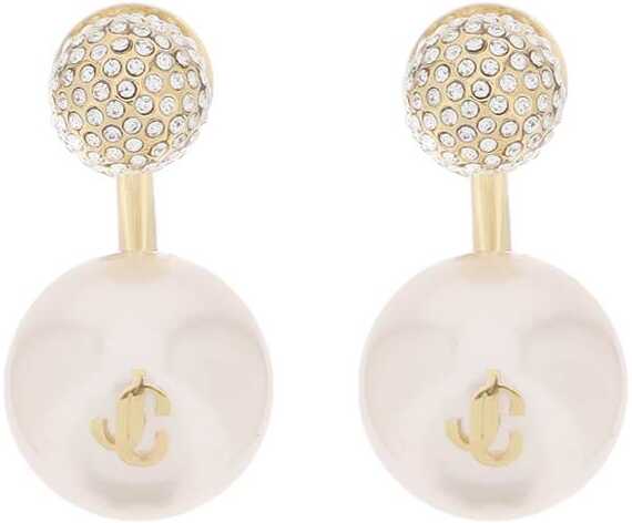 Auri earrings by Jimmy Choo made of gold-plated metal embellished with pearls and crystals and finished with monogram detail. Nickel free. Pin closure.