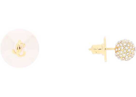 Asymmetrical Auri Studs earrings by Jimmy Choo made of gold-plated metal and decorated with pearl and crystals. Nickel free. Pin closure.