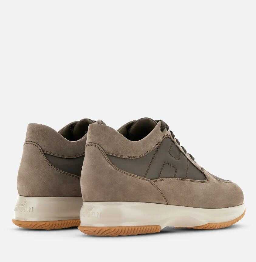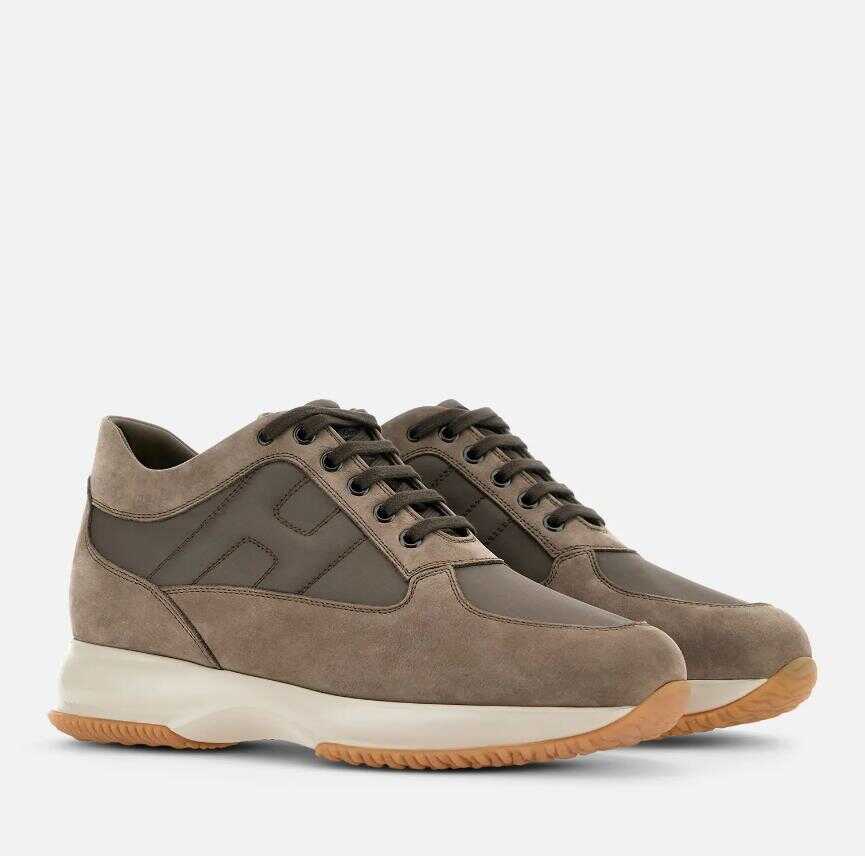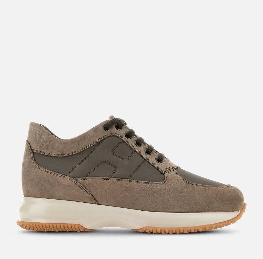 Nubuck upper with technical fabric inserts, visible stitching and raised side H. Removable fussbett with 1.2 cm rise. Rubber sole. Total height 5.7 cm.