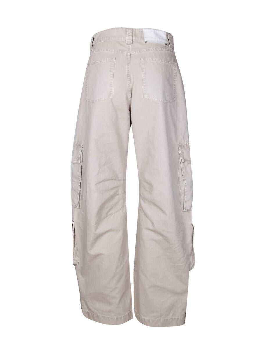 Cotton cargo trousers Beige Patch pockets Button and zip closure Buttons on the bottom of the leg to reduce the width