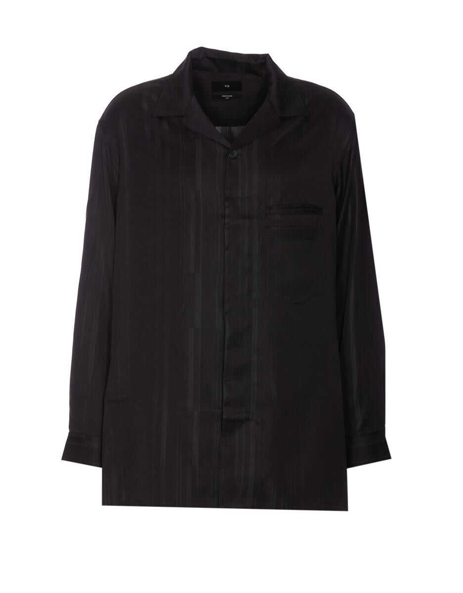 Adidas Y-3 black shirt, frontal buttons closure, regular collar, long sleeves, button on cuffs, tone on tone print on the back, one pocket detail on the front, US SIZE