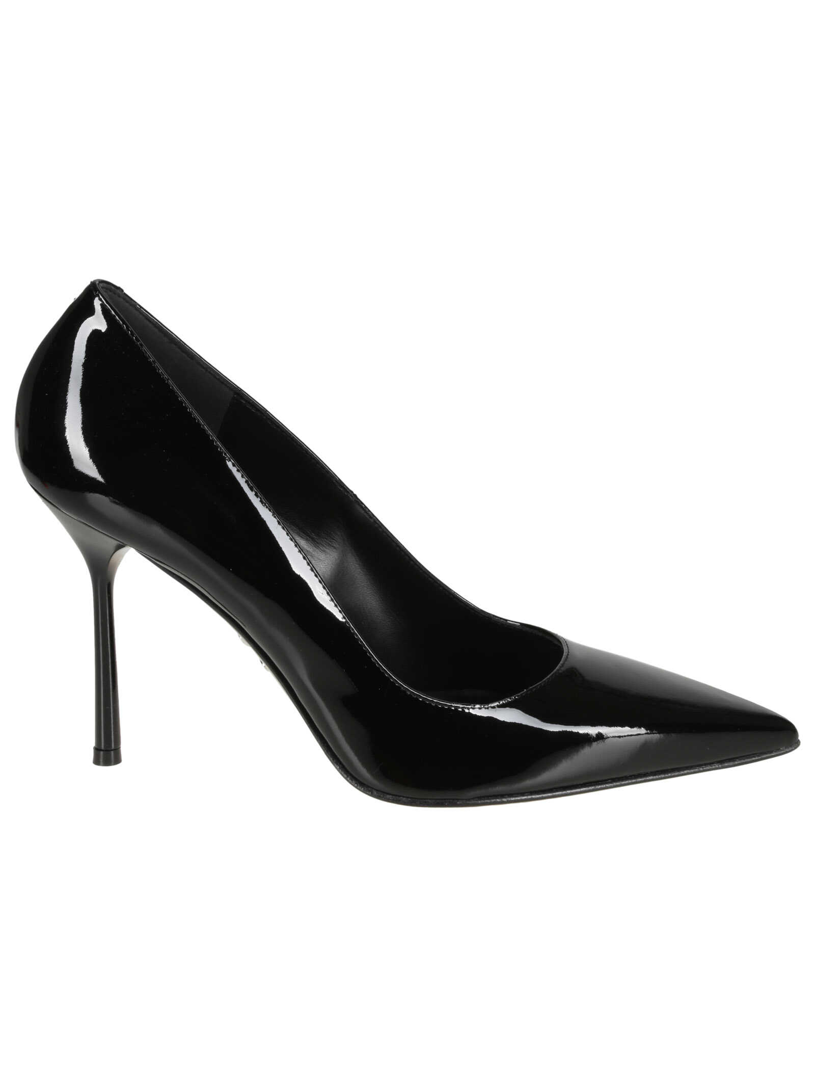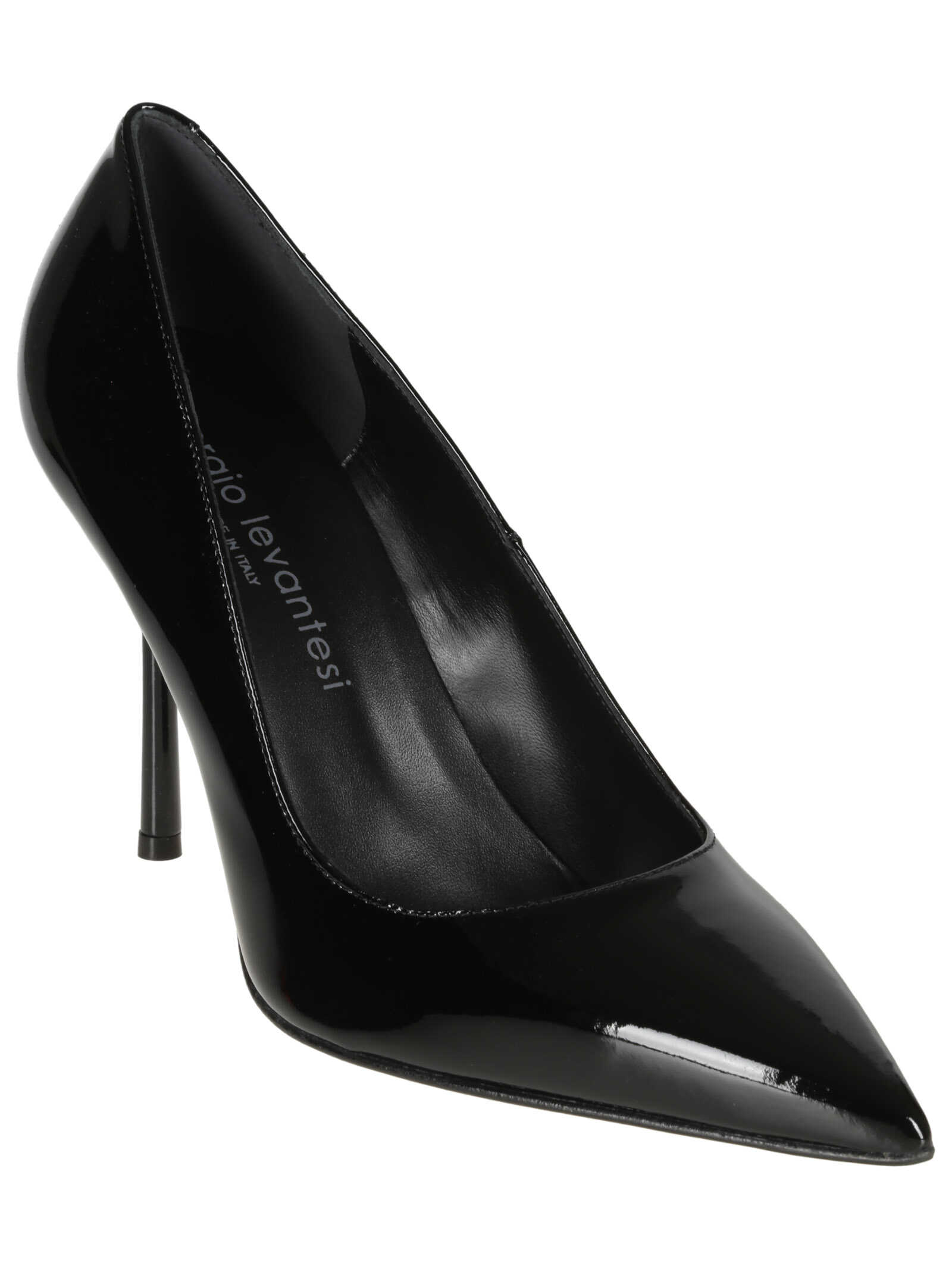 `SERGIO LEVANTESI Women`s leather pumps. Black patent color. Leather sole. High 9cm heel. Comfortable and elegant.`