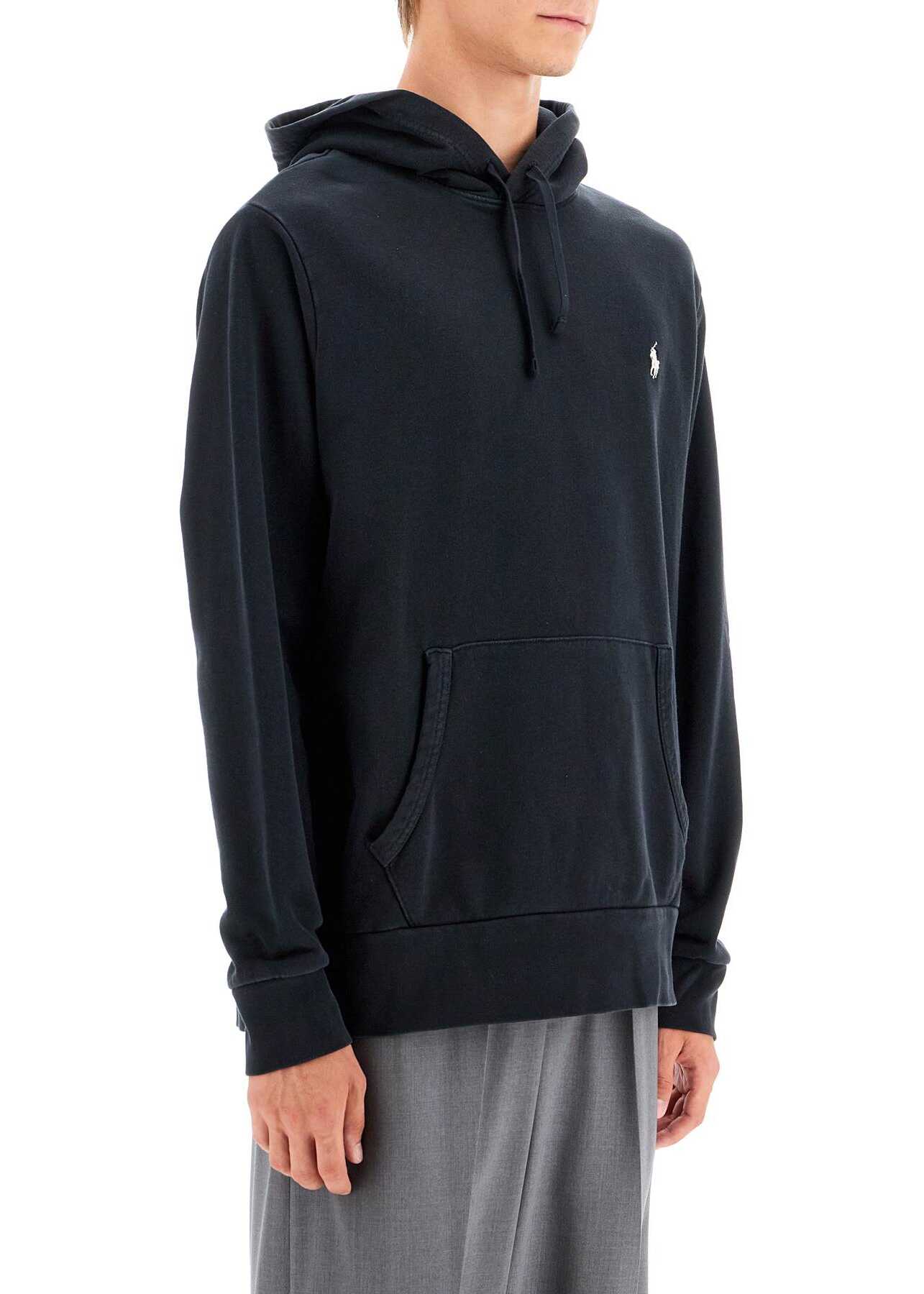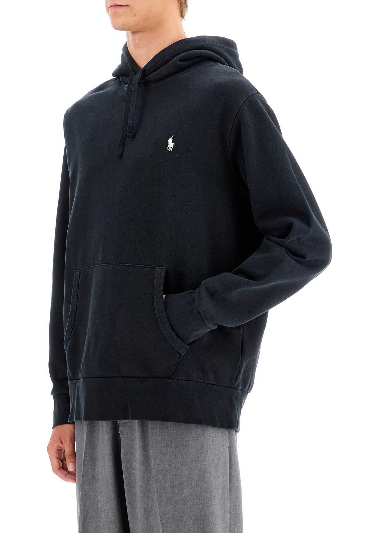 This Polo Ralph Lauren sweatshirt is made of soft cotton jersey and features an adjustable hood, kangaroo pocket, and embroidered Pony logo on the chest. The relaxed fit provides comfort and style. The model is 187 cm tall and wears a size L.