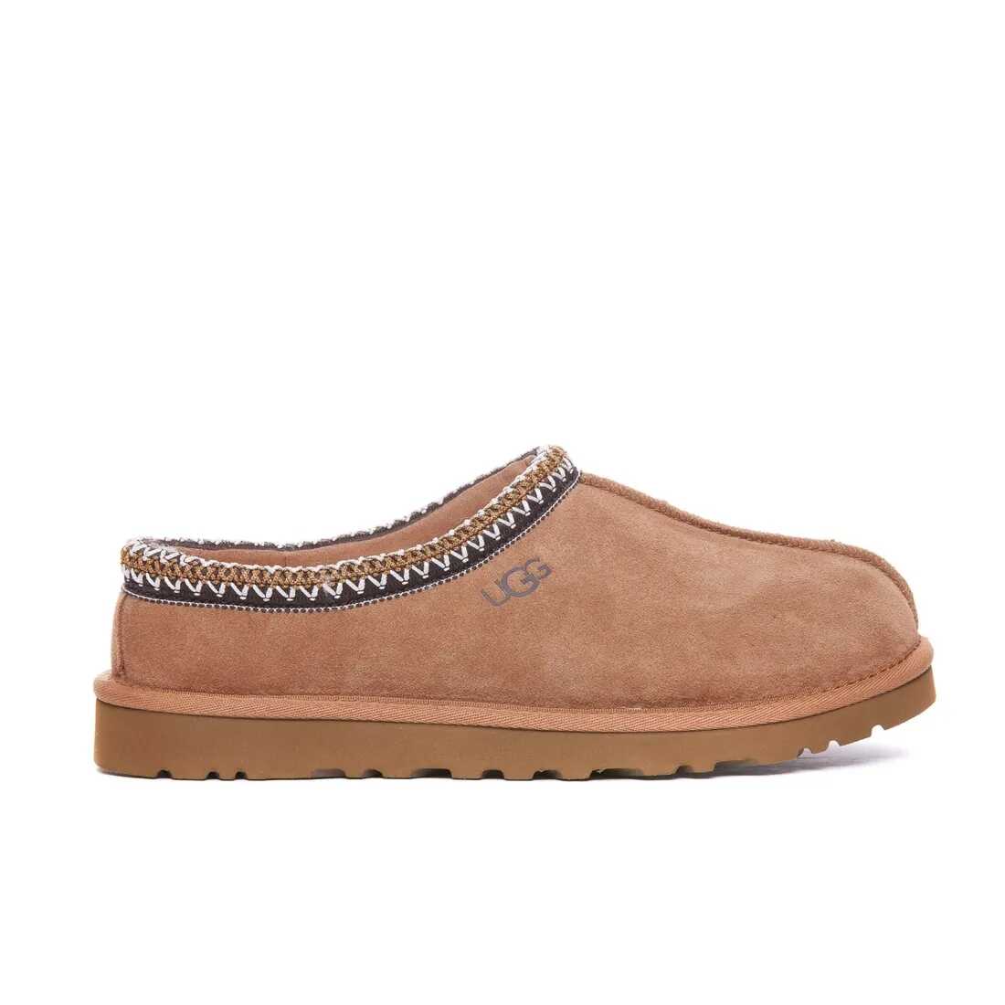 `UGG Tasman slipper made of suede with embroidered braid, lined with soft natural wool, Uggpure ™ wool insole, Treadlite By Ugg ™ sole, nylon binding.`