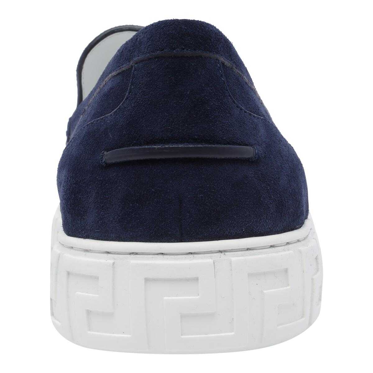 Versace Blue Medusa Loafers, Round Toe, Suede Upper, Frontal Silver Logo, EU SIZE (IT)