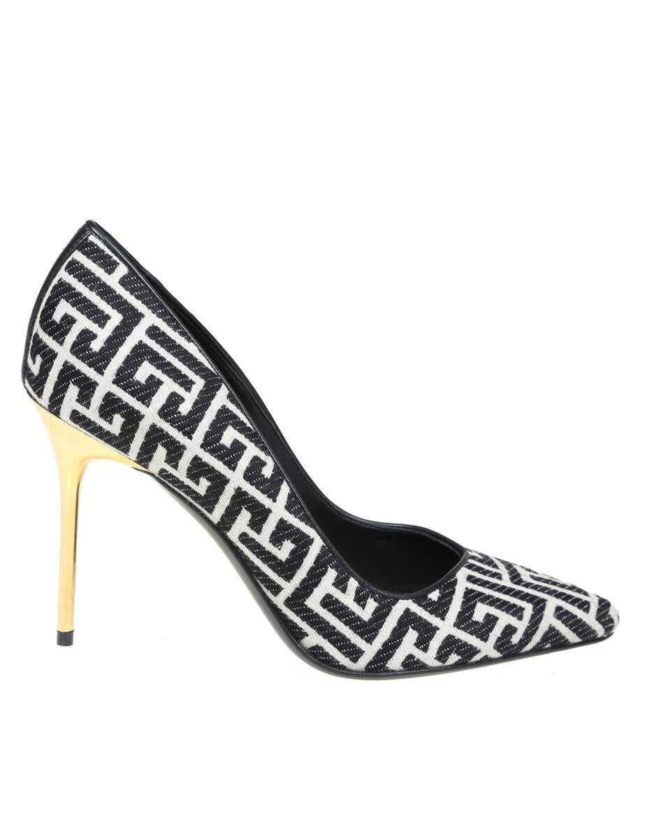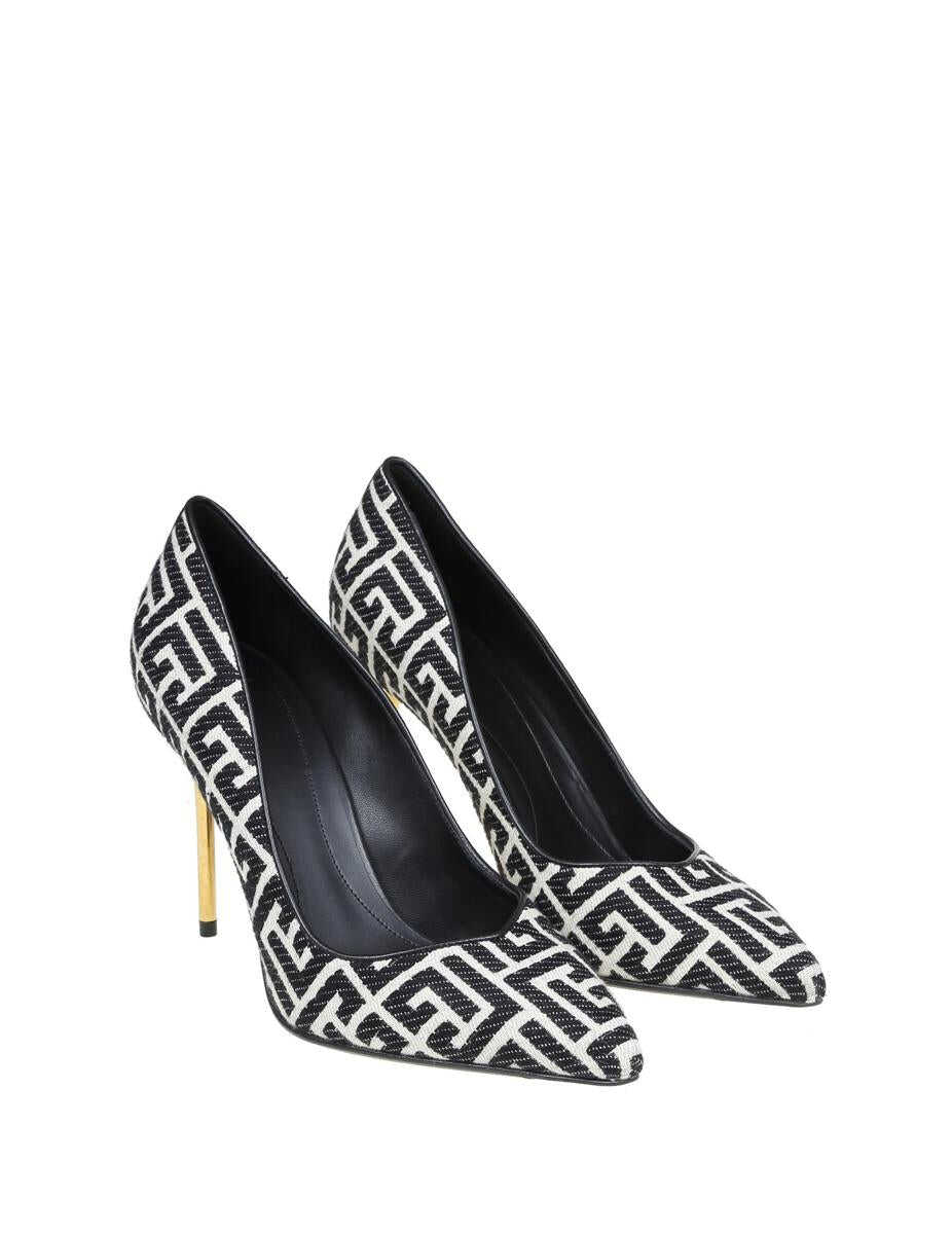 Pumps in monogram fabric Black and white color Pointed model Leather sole Leather interior 9.5cm burnished stiletto heel
