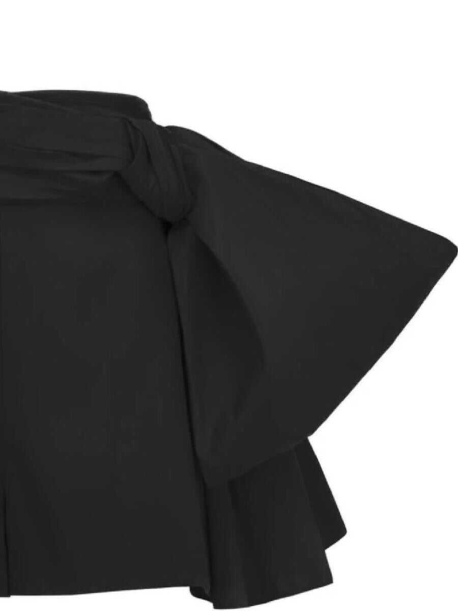 black wool tailored design pintuck detailing dart detailing oversize bow detail high-waisted pressed crease concealed side zip fastening rear welt pocket straight leg above-knee length