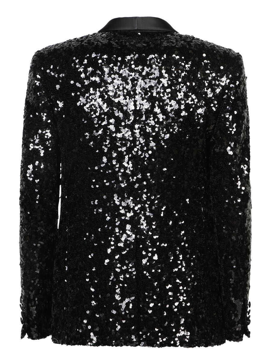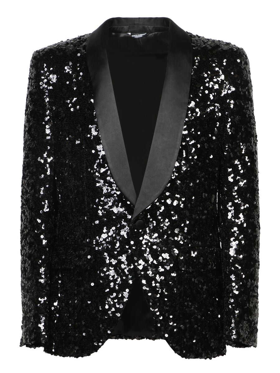 Black blazer from Dolce&Gabbana featuring long sleeves, round hem, buttons fastening, all over pailettes and regular vestibility.