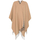 camel brown virgin wool-silk blend knitted construction textured finish cape design half-length sleeves logo-jacquard lining fringed edge open front