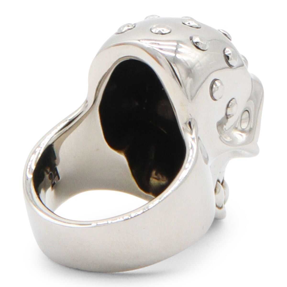Silver-tone brass The Jewelled Skull ring from Alexander McQueen featuring engraved logo, slip-on style and skull motif.