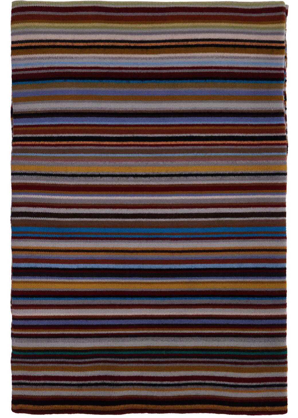 This Paul Smith scarf is made of double-knit virgin wool in a multicolored design featuring the iconic Signature Stripe pattern. Crafted with care, this high-quality accessory adds a touch of style and warmth to any outfit. The vibrant colors and soft texture make it a versatile piece that can be worn for both casual and formal occasions. Elevate your wardrobe with this unique and timeless scarf from one of the most renowned fashion brands in Italy. Perfect as a gift or as a treat for yourself,