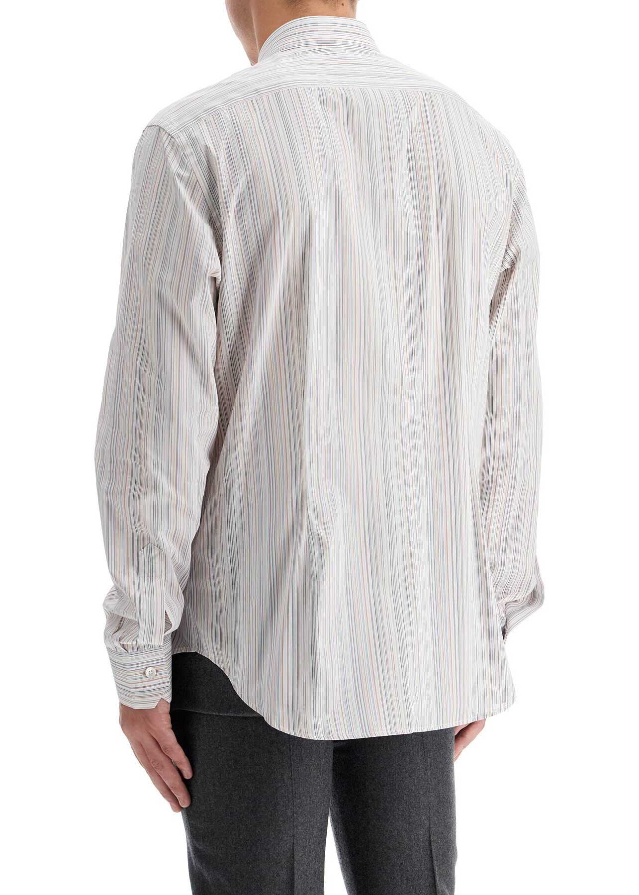 Made from cotton poplin with a slim fit, this Paul Smith shirt is characterized by a subtle multicolored stripe pattern. It features a classic Italian collar, rounded cuffs, and mother-of-pearl buttons. The model is 182 cm tall and wears size L.