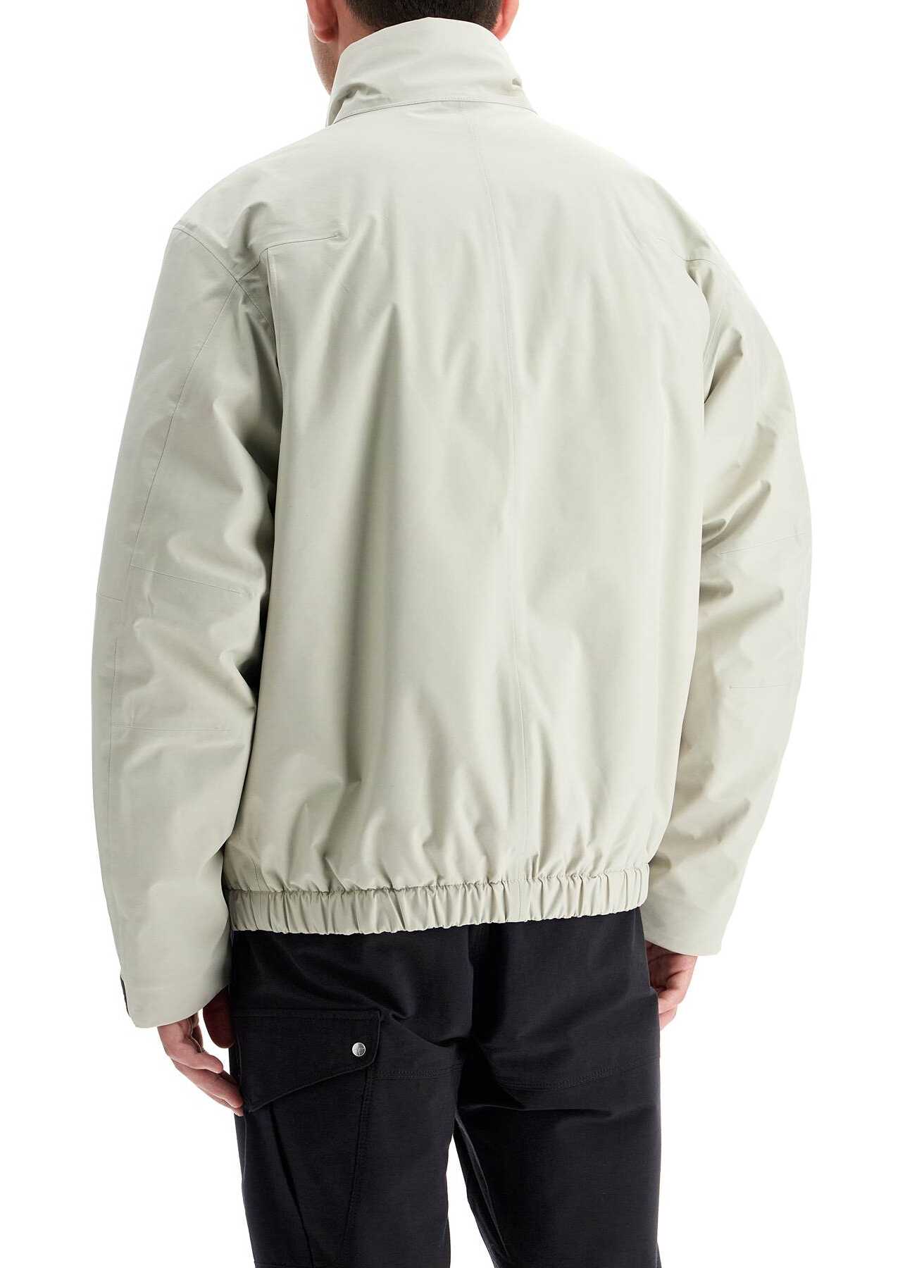 Short Stone Island jacket made of Gore-Tex from recycled fibers with Primaloft padding. Finished with taped seams and waterproof zippers, it has a straight cut with a standing collar and elasticized bottom, adjustable cuffs with velcro and two-way zip closure. The garment is completed by two double-entry pockets, one chest pocket and one pocket on the left sleeve. Embroidered star logo on the front, quilted lining with inner pocket. Regular fit. The model is 182 cm tall