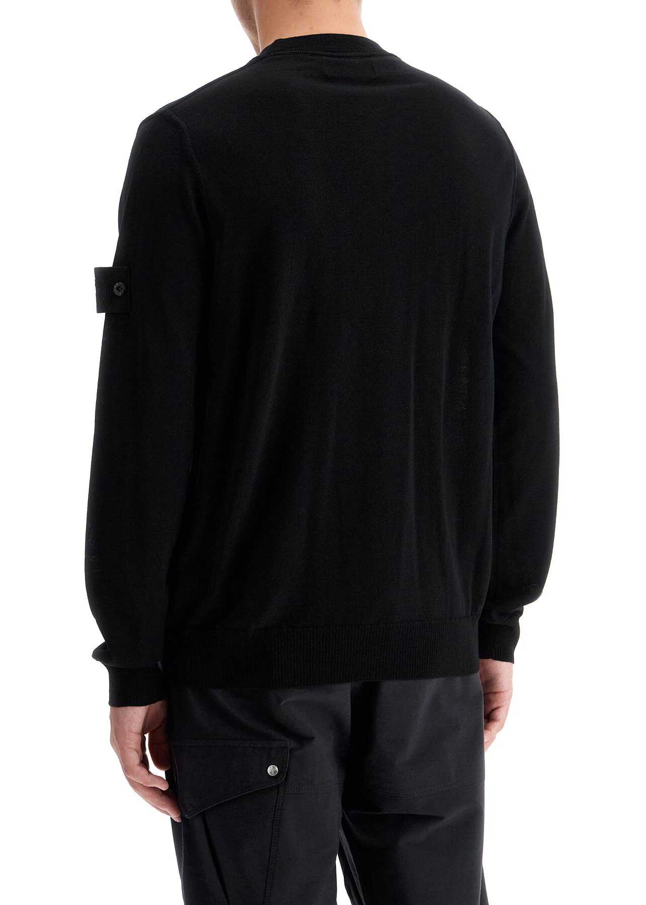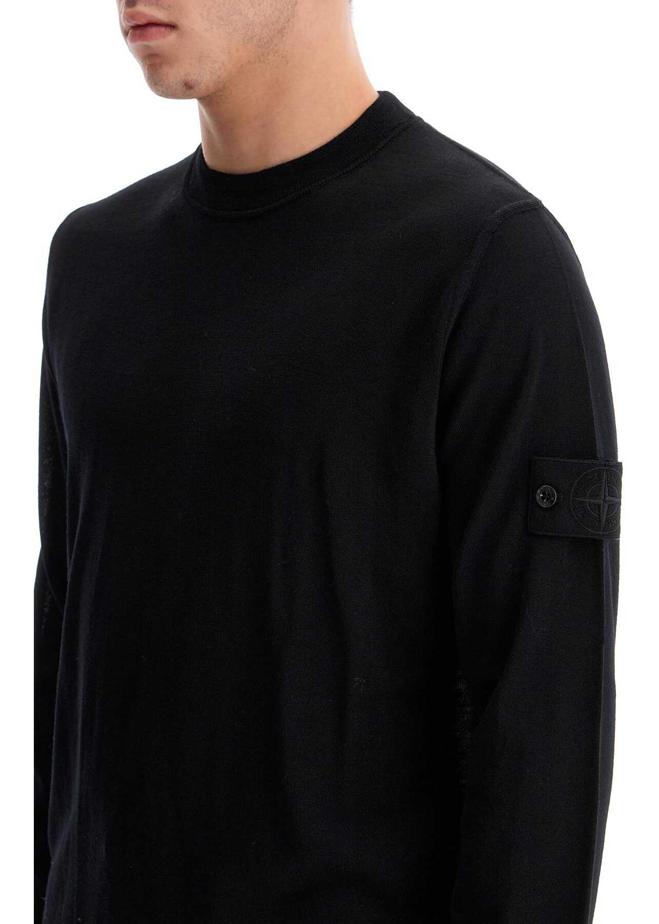 This Stone Island crewneck pullover is made of lightweight RWS pure virgin wool yarn with ribbed finishes on the edges. It features the iconic monochromatic Ghost series badge on the left sleeve. The fit is regular and the model is 182 cm tall, wearing a size M.