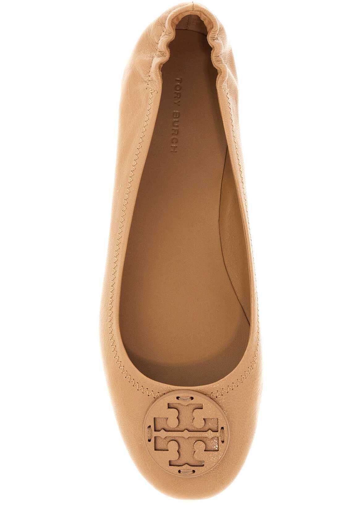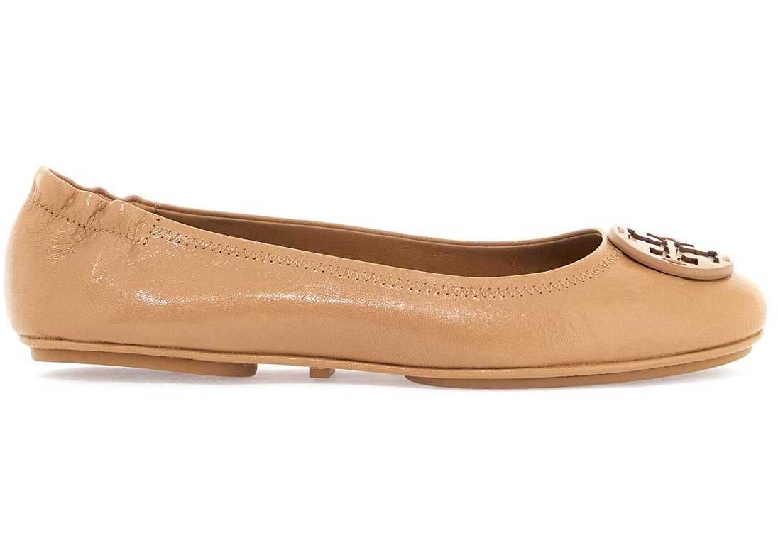 Tory Burch shiny leather with the iconic tonal double T logo. Elastic back, leather lining, slip-resistant rubber sole.