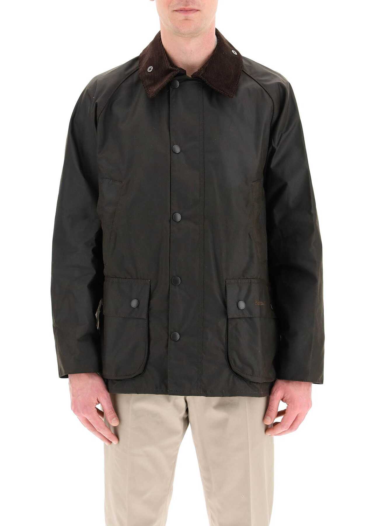 Barbour iconic jacket in matte waxed cotton, featuring a comfortable, straight cut with raglan sleeves. The traditional corduroy collar can be raised for added protection. This style features flap pockets with embroidered logo detail, moleskin-lined handwarmer pockets, double back vent, and a concealed zip and press stud closure. Signature tartan cotton lining, one inside pocket. The model is 185 cm tall and wears a size UK 40.